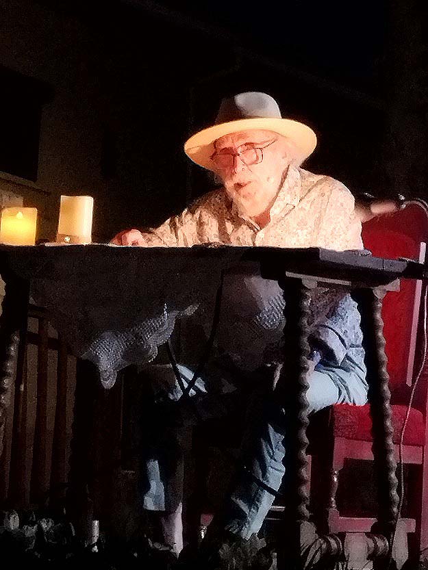 A Suárez de Puga, cuya avanzada edad ya no le permite cortejar a la noche que antes era su hábitat natural, y a otros grandes poetas que se nos han ido, como Alonso Gamo, Paco Marquina o Ramón Hernández, entre otros, les echamos mucho de menos el viernes pasado, 18 de julio, en la “Noche de versos” de Torija que celebraba ya su decimoquinta edición. Para quienes somos poetas, al menos en ciernes o en camino como yo me declaro, y para quienes lo son de verdad, es un motivo de satisfacción que una velada poética como esta de Torija alcance ya década y media de vida. Porque, pese a lo que decía Celaya, la poesía de hoy no es precisamente “un arma de futuro” y, como cantaba Germán Coppini, siguen corriendo “malos tiempos para la lírica”. Si la llamada “poesía social” fue, sin duda, un arma —eso sí, con una flor en la recámara en vez de una bala— para luchar por la libertad y la justicia cuando Franco las guardaba bajo siete llaves en un arcón en El Pardo, en los tiempos que corren, de libertad vigilada y justicia, a veces, en huelga de venda en los ojos caída, la poesía es más bien un “lujo cultural”. Por ello, que en Torija se sigan haciendo sus “Noches de versos” mediado julio es, eso, un lujo cultural sin comillas que hay que agradecer a su ayuntamiento, pero, sobre todo, a Jesús Campoamor, torijano de adopción, y, sobre todo, gran artista plástico, pintor de estilo muy personal y definido, inspirado escultor ocasional, y, para redondear su perfil cuasirrenacentista, también escritor y poeta. Gracias a Campoamor han ocurrido muchas cosas, porque es, como lo fue Fernández Molina en su día, no solo un creador, también es un agitador cultural. De uno de los “cócteles” de Jesús, combinado de palabras y angostura de amistad, surgió esta “Noche de versos” que se celebra cada año en la recoleta plazuela de la Iglesia de Torija, al pie de dos cipreses, uno de ellos mocho, y con un mosaico de telón de fondo que reproduce un soneto del diplomático y poeta torijano, José María Alonso Gamo, también con raíces en Tamajón por parte de madre.