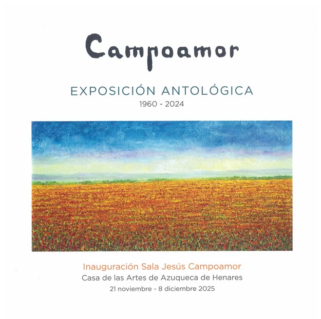 Campoamor, arriacense de nación, azudense de afección, torijano de adopción y guadalajareño de vocación, fue nombrado “Hijo predilecto” de la provincia por la Diputación de Guadalajara en 2022, entregándosele la distinción con ocasión del Día de la Provincia que en ese año se celebró, precisamente, en Torija, donde Jesús vive, pinta y es muy feliz con su querida Delia desde hace ya muchos años. En 2024, el Centro Asociado de la UNED de Guadalajara, uno de los más activos y referenciales que tiene esta universidad pública en provincias de similar demografía, decidió otorgar el nombre de Jesús a su utilizadísima biblioteca, tanto que va necesitando progresivamente ampliar su espacio en su sede del Centro San José. En septiembre de este mismo año, el Ayuntamiento de Torija le nombró, oficialmente, porque en puridad ya lo era desde hacía varias décadas, “Hijo adoptivo” del municipio, y el viernes, 21 de noviembre, el Ayuntamiento de Azuqueca de Henares inauguró en su novísimo Centro de las Artes la sala de exposiciones que también lleva el nombre de Jesús, en base a dos hechos afectivos y objetivos: Allí vivió un amplio período de tiempo Campoamor y allí le nacieron cinco hijos, de los que algunos aún residen en el municipio, y el consistorio azudense ha considerado, con buen criterio, que él era la persona más adecuada para dar su nombre a esta nueva, amplia y bien dotada sala por ser uno de los pintores contemporáneos más importantes de la provincia. Jerarquizar importancias en algo tan subjetivo como el arte es como intentar embolsar agua en las manos, pero, sin duda, él está entre la nómina más escogida de artistas plásticos de Guadalajara de la segunda mitad del siglo XX y primeras décadas del XXI. Además, a su faceta de pintor de reconocido y reconocible estilo, suma la de escultor ocasional —su obra que representa a un personaje femenino sentada junto a un libro y que él tituló “Paz”, instalada en una mediana de la calle Alamín en su cruce con la avenida de Burgos, es de una delicadeza y una belleza singulares— y la de sensible poeta e impulsor de la poesía pues a él se le deben las Noches de Versos que se celebran cada año en Torija en el mes de julio desde hace ya tres lustros. En este enlace se pueden obtener referencias de su última edición en un post de mi autoría publicado en este mismo blog: https://guadalajaradiario.es/blogs/jesusorea/2025/07/21/quince-noches-de-versos-en-torija/