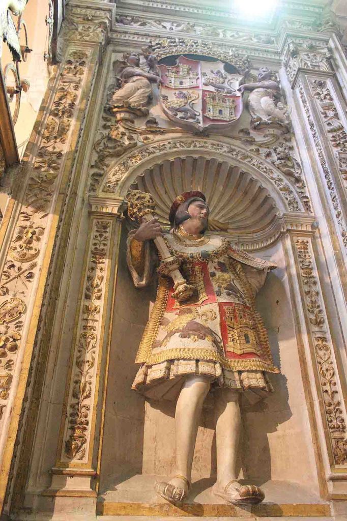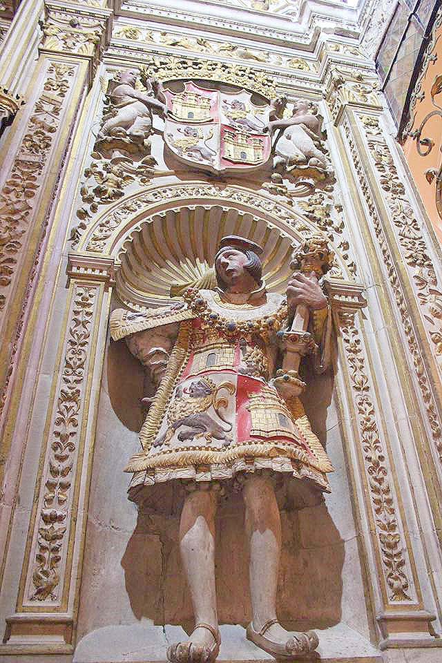 Pero bastará con que eleven la mirada a la entrada de la Capilla de los Reyes Nuevos, para que sepan cuáles son los símbolos de Castilla, los portan los dos grandes maceros de piedra que guardan la entrada de la Capilla.