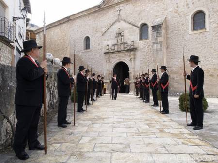 El acto central es la procesión del Silencio, que se celebra con las luces del pueblo apagadas y las calles solo iluminadas por el resplandor de las antorchas.