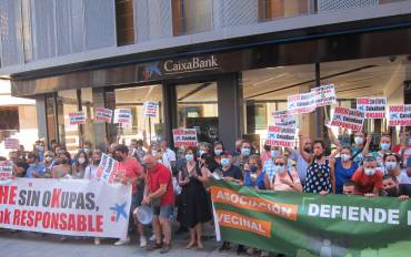 Se manifestaron frente a la entidad que tiene medio centenar de viviendas okupadas por un centenar de personas en un pueblo de poco más de 2.600 habitantes.
