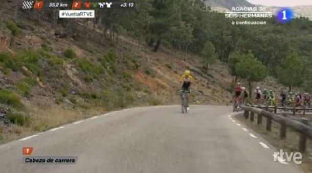La Vuelta a su paso por la ermita de la Virgen de los Enebrales, en Tamajón. El segoviano Pedro Delgado, que a pesar de la vecindad, nunca había subido La Quesera hasta que hizo el reportaje para sus Pericopuertos se convirtió en el mejor publicista de esta sierra negra de Guadalajara, y la Diputación supongo que ya le habrá enviado un buen tarro de miel, como poco. Al pasar por Campillejo, una bellísima aldea de la arquitectura negra, comentaba: “Estando tan cerca de Madrid esta zona va a sorprender a mucha gente porque es un encanto. Da la impresión de que está perdida en el mundo”. Con anterioridad, cuando los ciclistas tomaban desde Tamajón la carretera de Majaelrayo se refirió a los maravillosos paisajes por los que cruzaba la Vuelta y en los que se había encontrado restos de un leopardo del pleistoceno. En Tamajón te puedes encontrar de todo, hasta una Ciudad Encantada que no desmerece a la de Cuenca. “Agradecemos sinceramente a la organización de La Vuelta que haya elegido la Sierra Norte, y más concretamente al municipio de Tamajón, para hacer pasar por estas carreteras una de las etapas finales de la carrera. La gran ronda nos ha colocado en el candelero, puesto que toda España ha podido contemplar desde todas las perspectivas imaginables la belleza de nuestros paisajes, que además los comentaristas de TVE han subrayado con su narración”, valoraba esta tarde Eugenio Esteban, alcalde de Tamajón.
