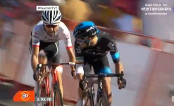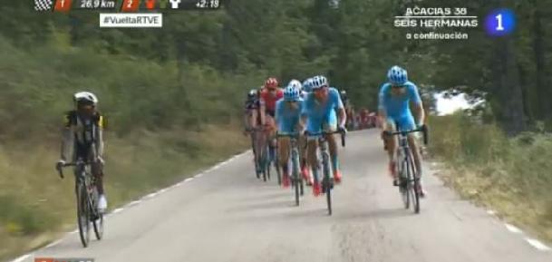 El que mantuvo una tranquilidad a prueba de bomba fue el holandés Demoulin, el maillot rojo. “Nunca he dudado de quje iba a resistir”, dijo al terminar. Le atacó primero Purito, por dos veces Fabio Arús y hasta Valverde. Pero siempre resitió y llegó a Riaza con el pelotón de favoritos. La etapa la ganó uno de los escapados, Nicolás Roche, que ganó al sprint a Zubeldia. No cambia nada en la general. Arús le sigue sacando solo 3 segundos y Purito 1,15. Y descontando la etapa final de La Castellana, al holandés solo le queda de problemático la llegada a Ávila de mañana, y sobre trodo la etapa de los puertos en la sierra de Segovia y Madrid. Hoy se pegó como una lapa a Arús, y en el macizo de Ayllón puede haber ganado tres cuartos de vuelta.