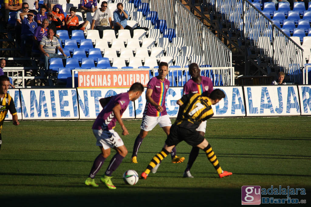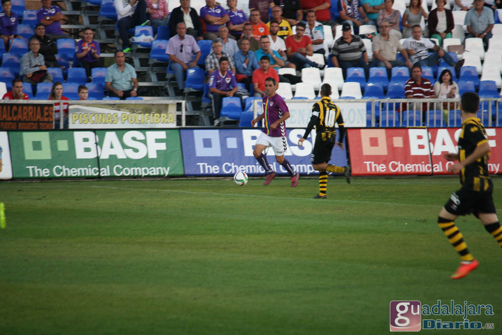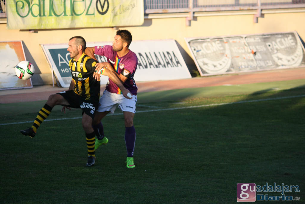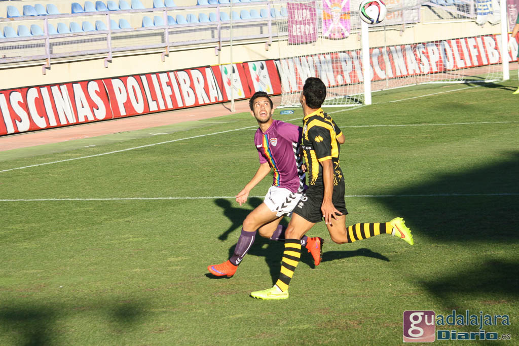 Un ex del Deportivo, Alain Arroyo, demostró que sí es un jugador con carácter. En la imagen disputando un balón a Moyano. Foto: Guadalajara Diario. Hay veces que no importa tanto perder, sino cómo se pierde. Y, ayer, el Guadalajara perdió ante un equipo que jugó en inferioridad numérica durante más de cincuenta minutos, pero sobre todo demostró tener más carácter que ellos.