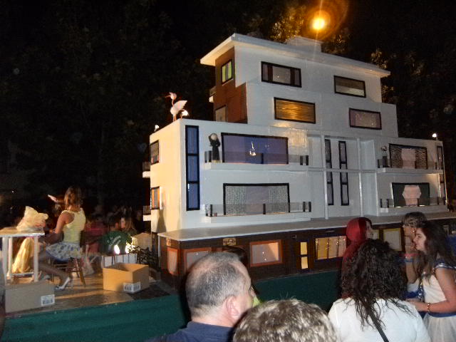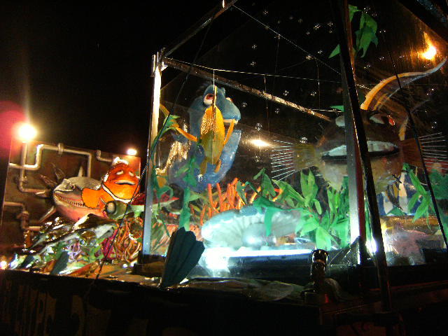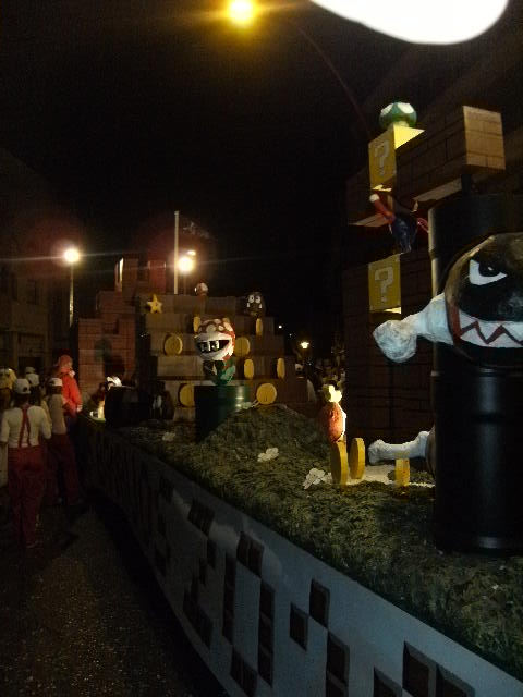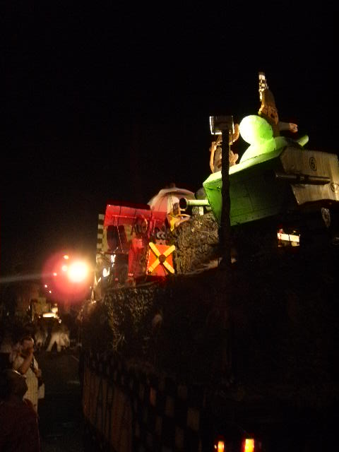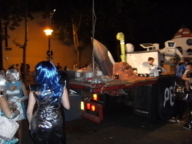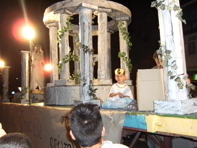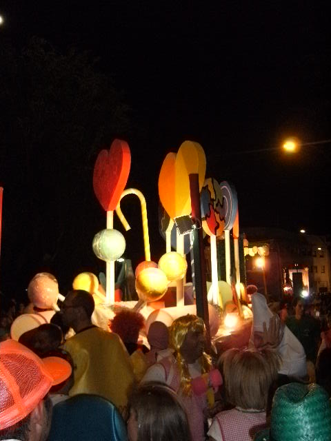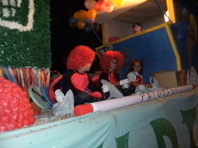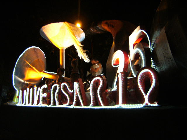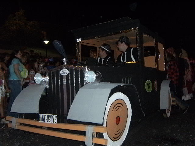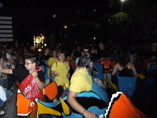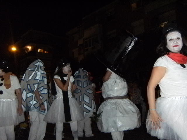 El desfile, que ha estado acompañado por el buen tiempo, ha contado en esta ocasión con recreaciones de espacios televisivos como 'La bola de Cristal' de La Calavera, 'La que se avecina' de La Amistad o 'Master Cheff' de Er Biberón. También ha habido homenajes como el de El Palique a 'Miliki' o el de la peña El Bollo que ha hecho un 'Homenaje a sus carrozas'. Una montaña rusa, una pista de esquí, o el espacio, también han tenido presencia en el desfile con las carrozas de Las Torres, La Rhuyna y Akelarre, respectivamente. Los 'Autos locos' han inspirado este año a dos peñas: Funeraria y Azikuékanos, mientras Los Bravos han apostado por 'Super Mario Bross' y Psiquiátrico por 'Rompe Ralfp'. Los Cachimbas han celebrado su 25 aniversario con una carroza sobre la peña, mientras La Chilaba ha apostado por 'El Mago de Oz', Los Dalton por 'Mi villano favorito' y El Catre por 'Nemo'. Alcatraz también se ha dejado seducir por el mundo del mar con 'Peces', El Felpudillo ha paseado una gran carroza de 'Chucherías', La Mosca-Gao se ha fijado en 'Grecia' y La perrera ha apostado por los 'Juegos olímpicos'.