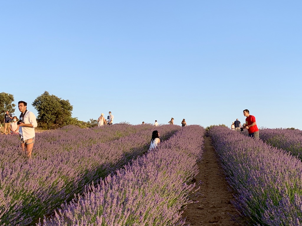 Primero la vista. Un mar morado se extiende delante de los ojos de quien llega, tan llamativo que te hace olvidar a la gran multitud que como tú está disfrutando del espectáculo. Luego llega el olor penetrante, intenso e inconfundible … Y el sonido, con cientos de abejas zumbando y libando de las flores, y el tacto… suave y flexible en las zonas florecidas y áspero y recio en los tallos.