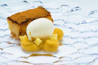 un postre dfe El Doncel En un año en el que las medidas adoptadas por la pandemia han dañado severamente a la hostelería, la publicación, que sale a la venta este martes, se ha presentado este lunes por primera vez en un evento sin público retransmitido en directo desde la Real Casa de Correos de Madrid, en el que han intervenido desde sus restaurantes los cocineros que estrenan su segunda estrella y los que mantienen las tres.