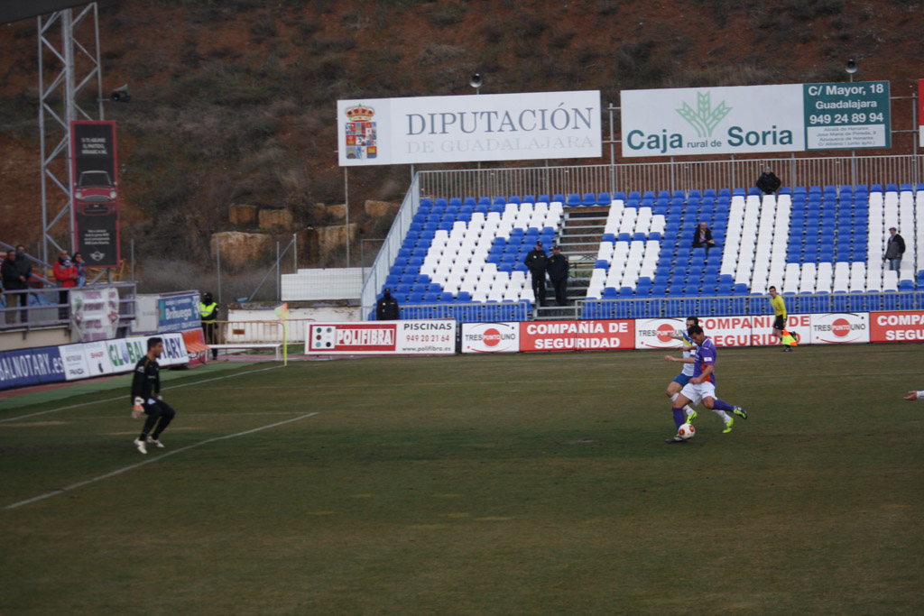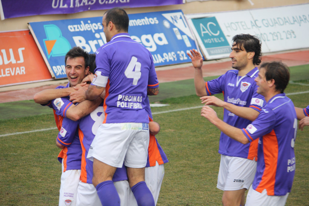 Los locales llegaban ante la meta de Gerardo en oleadas y esta vez no querían sorpresas tontas como con el Algeciras. Solo habían pasado seis minutos desde el gol de Toledo y el Guadalajara cerró el partido. Fue Joan Grasa, que estaba cumpliendo con creces en su función de enganche, quien metió el golazo de la tarde. Enganchó un balón fuera del área y le imprimió una parábola mágica hasta el punto de que sobrepasó al portero, un pelín adelantado, y acabó entrando por el ángulo derecho. Ahí se puede decir que acabó el partido. El colista perdió toda esperanza, hasta el punto de que solo lanzó una vez a puerta en todo el primer tiempo: fue un tiro esquinado de su delantero centro, en el 42.