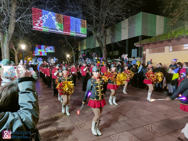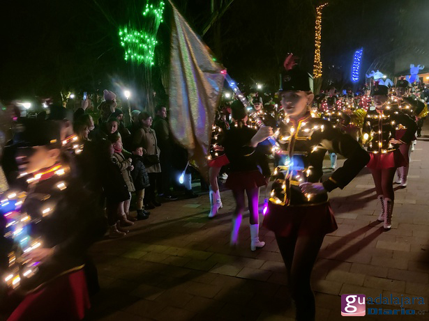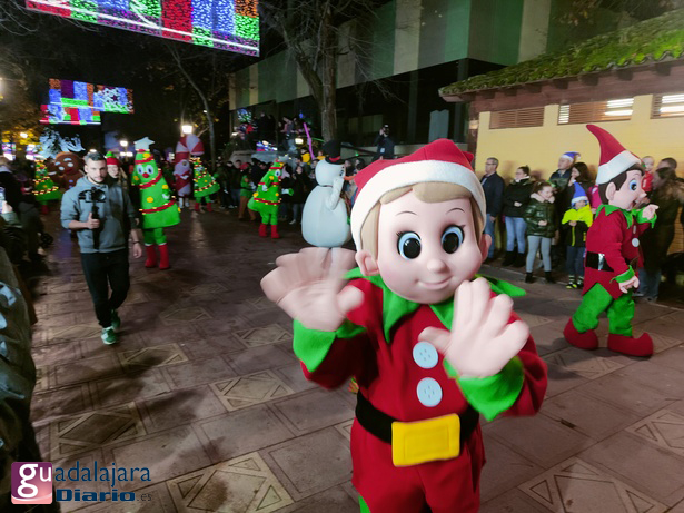 Y la las siete en punto la música y las luces dieron paso a un conjunto de 'majorettes', que al más puro estilo estadounidense anunciaban esta 'parada' navideña de recibimiento al también llamado Santa Claus o San Nicolás en otras latitudes. La comparsa de fantasías navideñas formada por árboles de navidad luminosos, bolas de navidad, personajes de fantasía...etc, precedidas de dos grandes figuras blancas a la comparsa de 'elfos'.