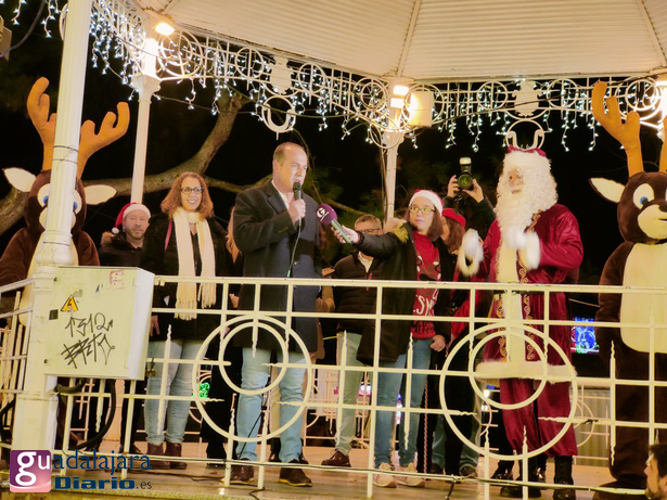 Una vez allí la corporación municipal, con su alcalde Alberto Rojo a la cabeza, recibían en Guadalajara esta primera visita en desfile de Papá Noel. Ya arriba del templete de la música, Alberto Rojo le dió la bienvenida a nuestra ciudad y también Papá Noel dirigió unas palabras a todos los niños y niñas que habían acudido a recibirle este 2022 a Guadalajara.