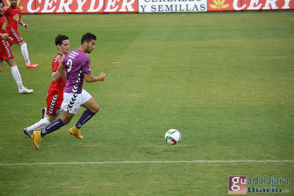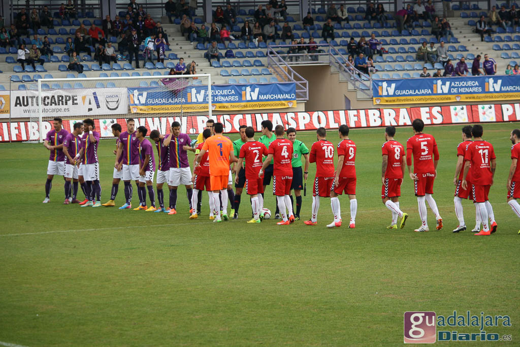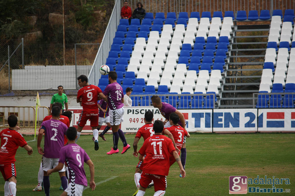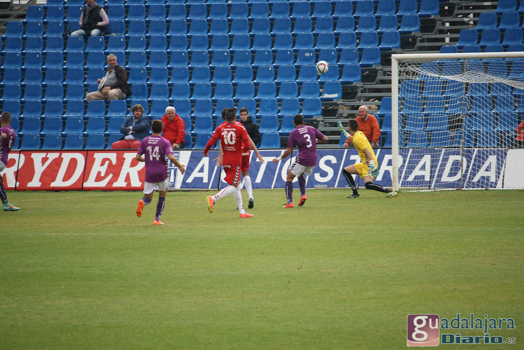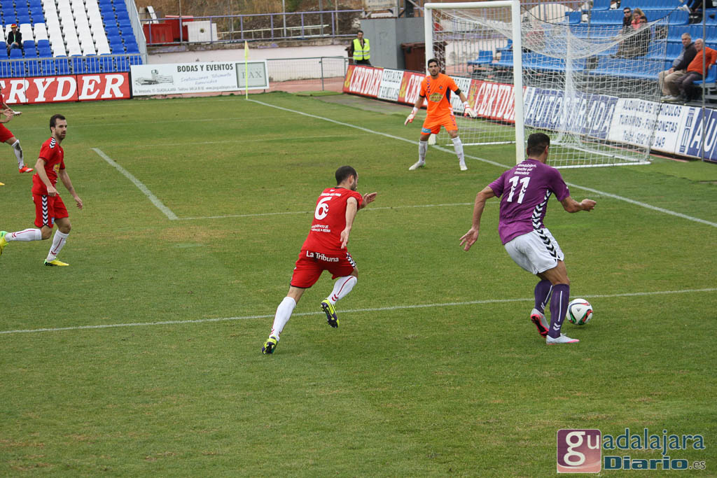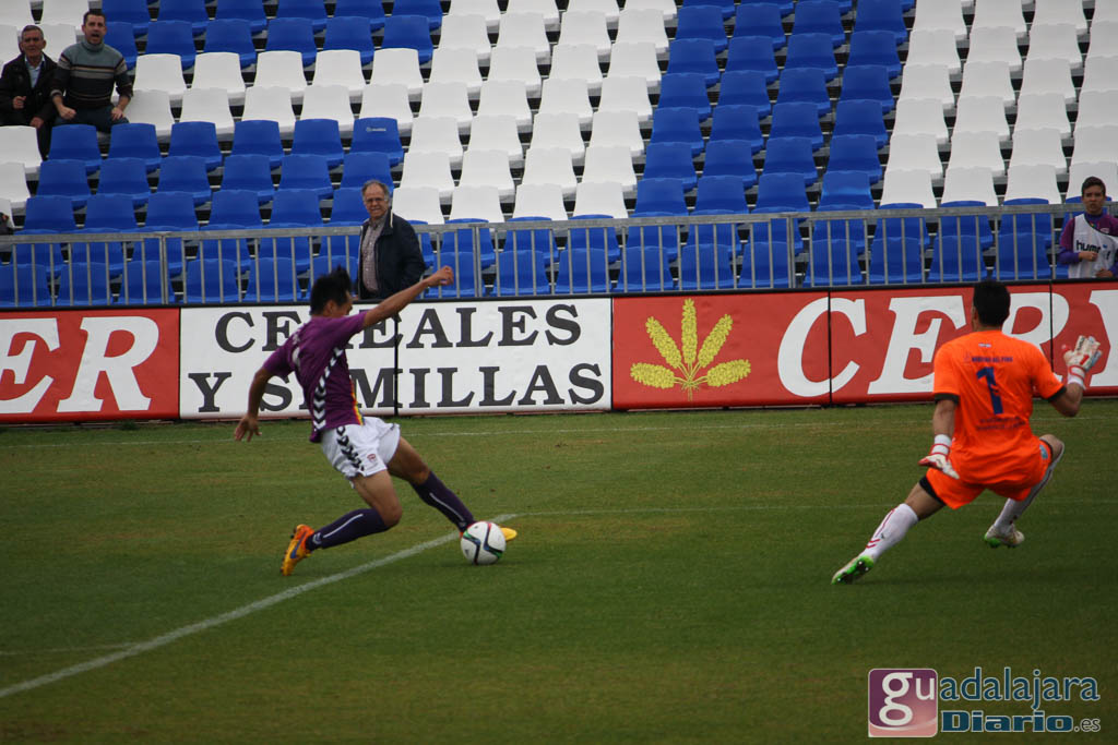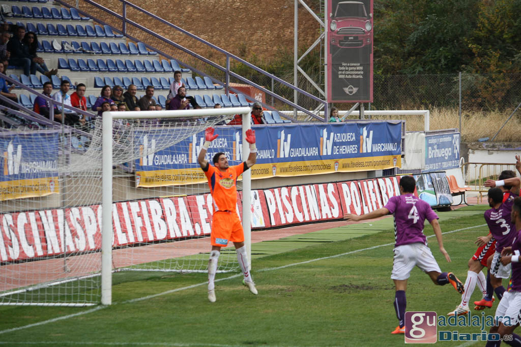 El balón del gol nada más salir de la bota de Pedro. Nadie esperaba otro tropezón del Guadalajara frente al Talavera, un recién ascendido que con mantenerse justificaría su temporada, pero en honor a la verdad, y a medida que fueron pasando los minutos, a nadie le sorprendió. Cano mantuvo el equipo de Leoia con la obligada baja de Diakité, que solucionó adelantando a Robin al medio centro defensivo, y metiendo a Nieblas de central. Tras unos primeros 15 minutos de tanteo, sin que se produjera ni una sola llegada, pronto se vio que el Guadalajara tenía un serio problema en la creación. Aunque inicialmente el equipo jugó con un 4-2-3-1, con solo Riki en punta, con los apoyos de Iglesias y Lee por las bandas, el balón no pasaba apenas por Miguélez, que jugaba más adelantado, de enganche, y eso se tradujo en un fútbol poco aseado, que lo fiaba todo a una jugada aislada o a balón parado. Y esta ocasión llegó en el minuto 16: Miguélez sirve un balón adelantado a Lee, pero el canterano se aturulla y tropieza, y no puede ni disparar ni ceder sobre Riki, en inmejorable posición. Fue la mejor ocasión del Guadalajara en todo el partido. El Talavera, bien plantado atrás, sacó las uñas en el minuto 25 en un remate Agudo desde la frontal del área que rozó el palo. En el minuto 30, Rubén Rivera tuvo otro remate peligroso que también pasó rozando el palo. Y en el 45, es José Sánchez el que agarra otro balón al borde del área, pero su remate pasa rozando el poste.