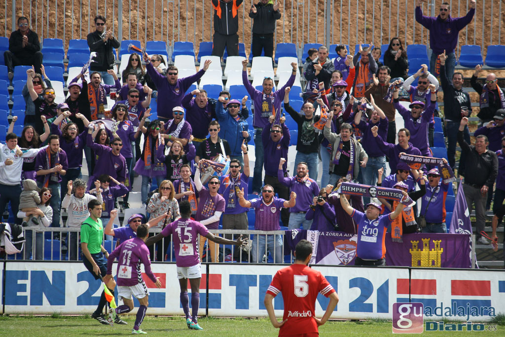La celebración de un gol que cambió el partido. Pero vayamos por partes. Antes hay que decir que Guadalajara y Amorebieta jugaron un primer tiempo con muy poco fútbol y ausencia total de oportunidades entre un equipo que no se jugaba nada y otro que por muy diversas circunstancias, deportivas y extradeportivas, se ha asomado peligrosamente al precipicio de la tercera división.