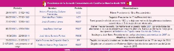 La elección del nuevo presidente regional reanuda una tradición interrumpida de gobiernos socialistas desde que José Bono se convirtió en el primer presidente electo en 1983 y que solo fue interrupida en 2011 con el triunfo del PP de María Dolores Cospedal. Tal es así, que García Page se lo recordó a Cospedal en el debate de la sesión de investidura con estas palabras: “Según la lógica política, no tocaba que ganara el PSOE porque lo normal es que el elector conceda un segundo mandato, por lo que han tenido que hacer las cosas muy mal para que haya tenido ganas de cambiar”. A este dardo, le respondió Cospedal con otro: le recordó que nunca jamás el PSOE había tenido peores resultados en unas autonómicas y que para ser presidente ha necesitado el apoyo de Podemos, partido al que Cospedal trató en el debate con un inusual guante blanco, para lo que luego dicen de él ante la prensa. La presidenta de los populares dejó muy claro que el pacto es “legítimo” y que ellla no lo discute: “No nos vamos a cabrear porque hayamos dejado de gobernar”.