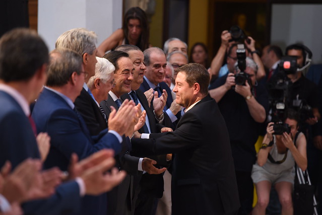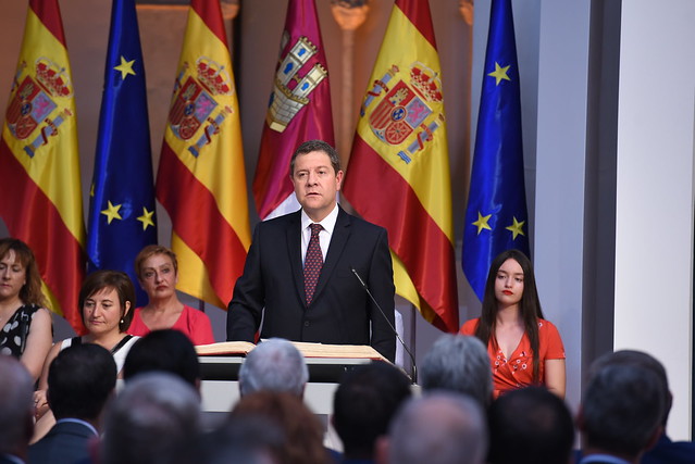 Un acto que comenzó a las ocho de la tarde en el patio central del Palacio de Fuensalida, casa de emperador Carlos V, con el juramento -formula que empleó- como presidente de Castilla-La Mancha y que terminó con la interpretación del himno nacional.