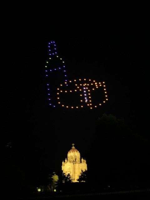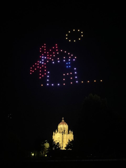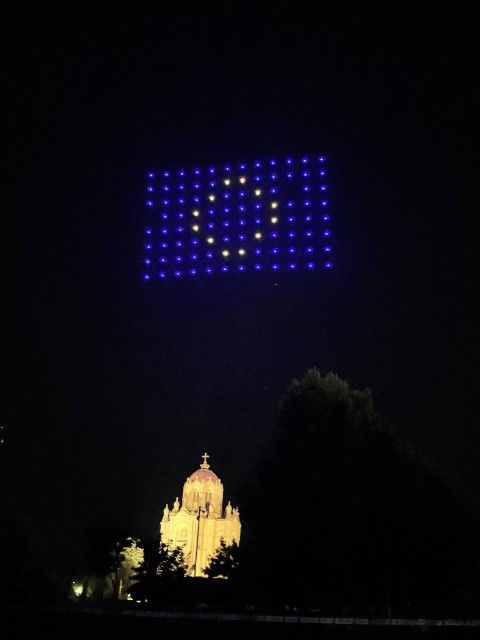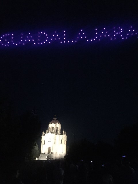 En los diez minutos de vuelo los drones se perfilaron muchas figuras sobre el cielo de Guadalajara con emblemas tanto de la autonomía como de Guadalajara, escudo de CLM, quesos, vino, concatedral de Santa María... hasta molinos de viento y otros han sido las figuras que han compuesto en perfecta armonía artística e informática.