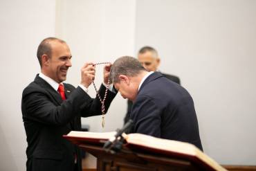 Momento en el que Page recibió la medalla de diputado regional el pasado mes de julio/ Archivo