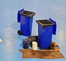 Foto: Guadalajaradiario.es/DiegoAsí, como se puede comprobar en las imágenes, las goteras de la techumbre del Pabellón deportivo 'David Santamaría' de Guadalajara se acumulaban en los improvisados contenedores de basura que se colocaron lo más rápido posible por los técnicos municipales.