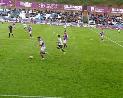 Poco a poco los morados comenzaron a adueñarse del encuentro con su típico juego de combinación. Trazando jugadas de tiralínea buscaban los huecos hacía la portería de Bernabéu ante un Conquense totalmente acorralado. Se cocinaba el gol y lo encontró Cañizo, pero el colegiado lo anuló por fuera de juego.