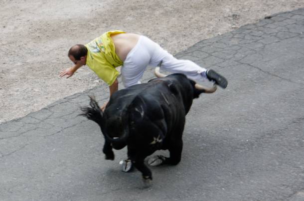 Un lance del encierro.Foto: Santiago Barra.Ya de madrugada, se intentará que las reses vuelvan al corral, en la plaza de San Felipe (no siempre se consigue), desde donde realizarán la conocida como Bajada de los Toros al día siguiente hasta la citada plaza.