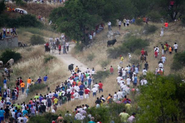 Los toros son seguidos en Brihuega por miles de personas. /Foto: Santiago Barra. Cada año Brihuega congrega a miles de aficionados llegados desde todos los puntos no sólo de la provincia, sino del resto de España, ya que se trata de uno de los encierros por el campo más antiguos a nivel nacional, con referencias escritas desde al menos el siglo XVI. Por lo tanto, quien quiera participar en él deberá llegar a Brihuega con mucho tiempo, porque la Guardia Civil cerrará los accesos a la villas desde horas antes. Este año el encierro coincide con el sábado, con lo que se incrementará la afluencia de corredores.