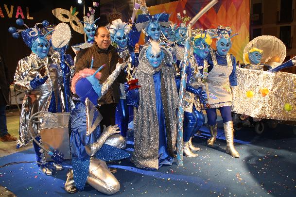 Guadalaxia en Carnaval, primer premio en grupos. Fotos: GD.Unas 150 personas han participado en la XXXV edición del concurso de disfraces de adultos del Carnaval de Guadalajara, que se celebró en la noche el sábado. Mucho público también el que acudió hasta la plaza Mayor hasta donde llegó el desfile. Como todos los años, noche fría en Guadalajara, pero menos que en los últimos días de la ola de frío. Luego hubo votaciones y baile, y un buen ambiente en lineas generales. Guadalaxia en carnaval, de diseño futurista, una atrevida e imaginativa parodia de un parto y una ladrona de guante blanco se alzaron con los primeros premios. GALERÍA DE IMÁGENES ADULTOS EN EL INTERIOR.
