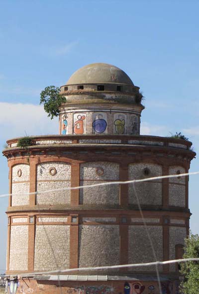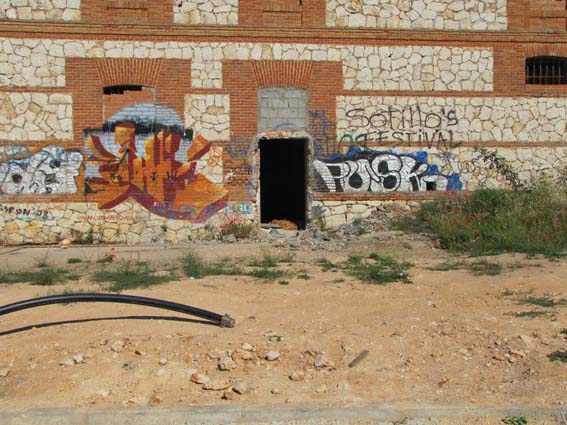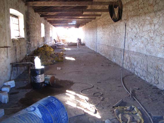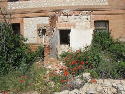 Lo que queda del viejo molino. Foto: GDCompletan el conjunto un molino destinado a la extracción de agua, la vivienda principal (que no era de Reyal, sino de Hercesa por lo cual quedaría fuera de la anterior actuación ), la bodega y el almacén. El más interesante para Hispania Nostra es la bodega, que se compone de una nave con grandes tinajas de almacenamiento, en gran parte destruidas, y dos corredores subterráneos a lo largo de los que se disponen hornacinas con más tinajas.