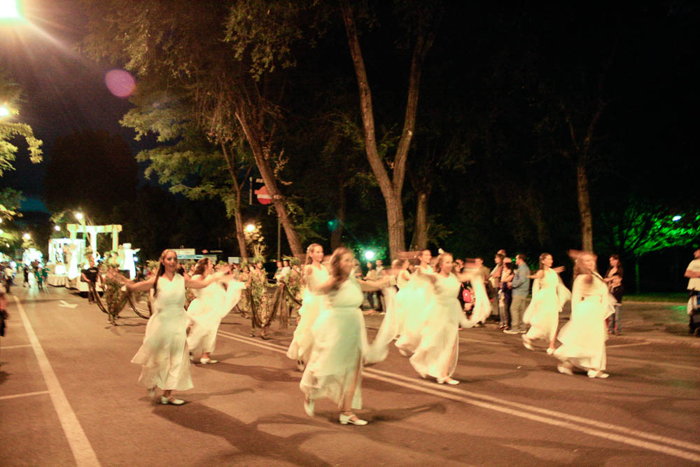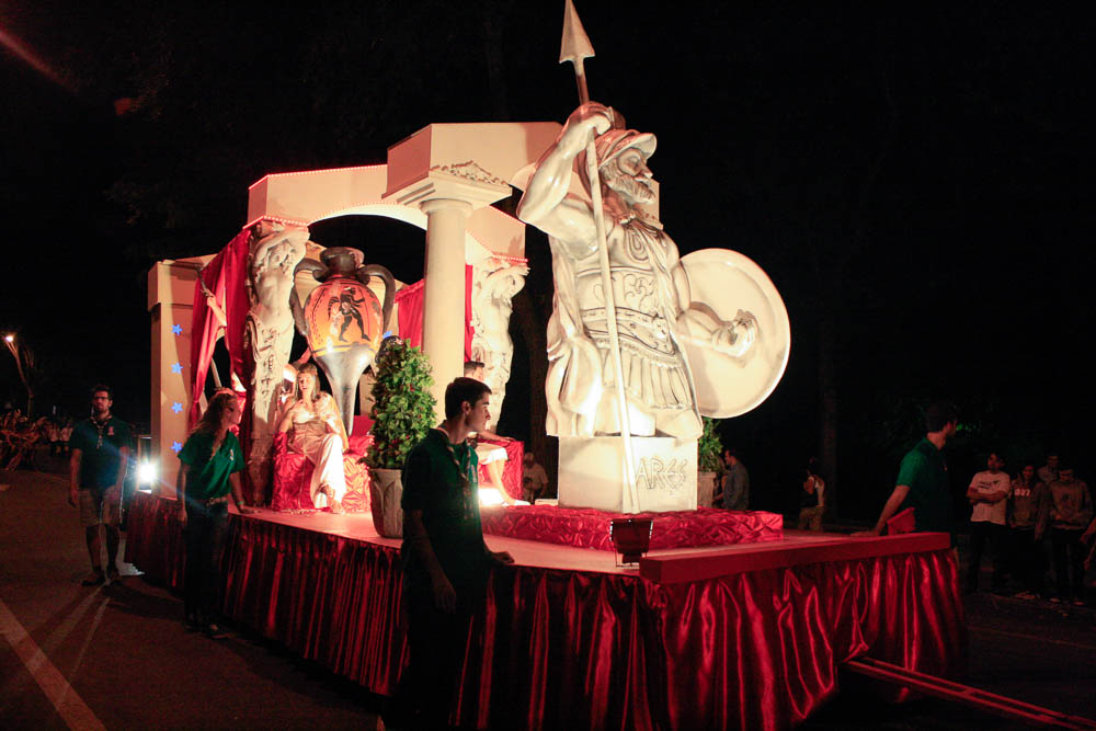 El desfile de carrozas fue un año más el acontecimiento que más público congrega en las Ferias y Fiestas de Guadalajara. Siguiendo con la tónica de años anteriores, en que se busca una unidad temática, este año buscaba ser una fantasía en torno a dioses mitológicos y monstruos. Las carrozas, sin desmerecer, tal vez no llegaron a la espectacularidad y originalidad de otros años, pero los grupos que las acompañaban rayaron a gran altura. Tanto por los trajes y disfraces que exhibieron como por los bailes y danzas.