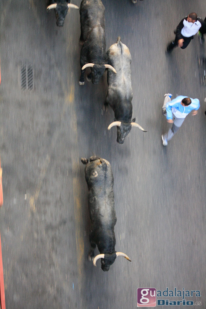 Encierro histórico el vivido hoy en Guadalajara. Toros astifinos de Adolfo Martín en las calles para el que ha podido ser el encierro con mayor número de corredores de las Ferias de Guadalajara.