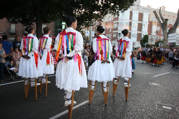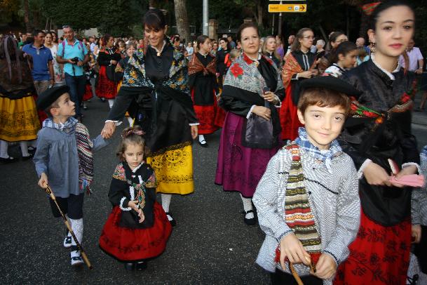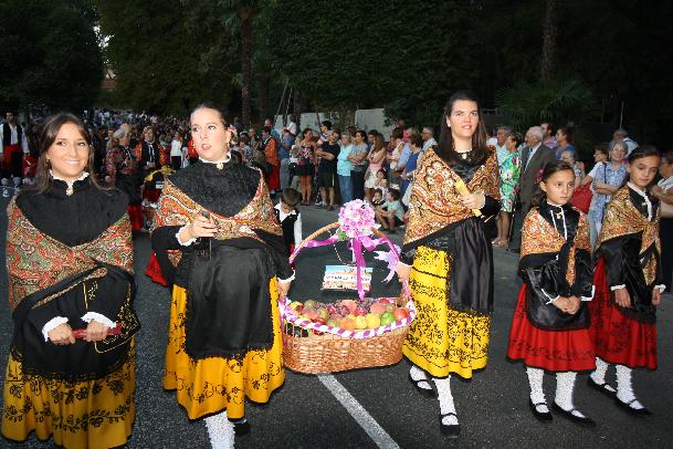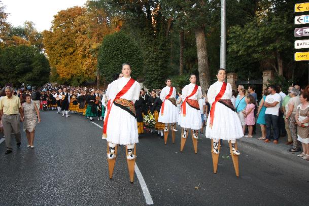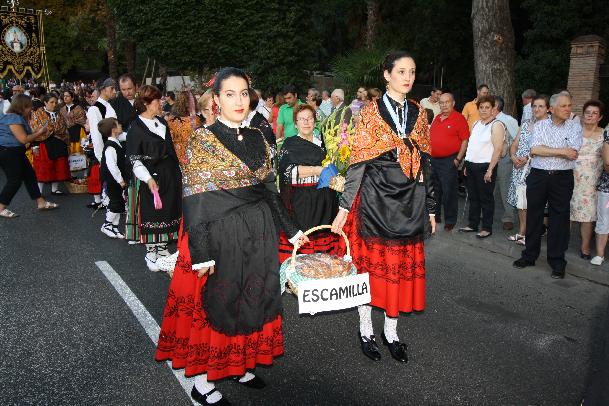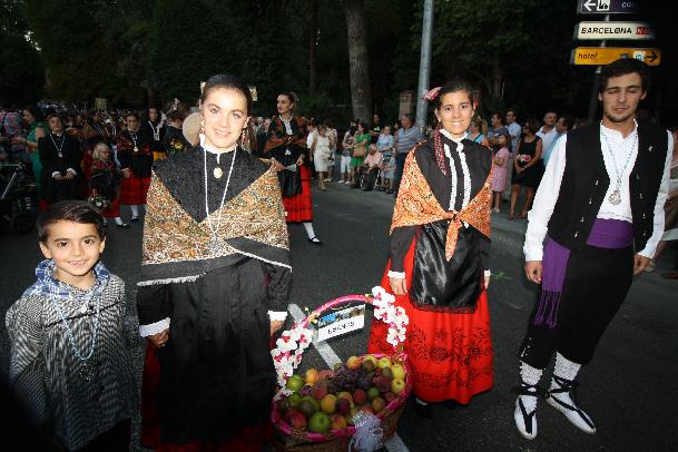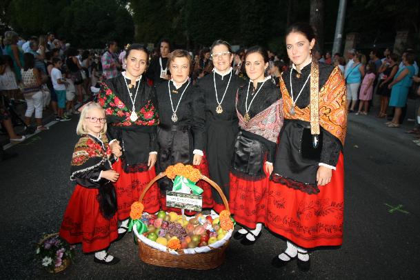 En grandes cestas se llevaron los frutos con las ofrendas que tradicionalmente se hacen a la virgen por los antiguos partidos judiciales, barrios de la ciudad y algunos pueblos de la provincia. Tampoco faltaron los zancudos del grupo de bailes de La Cotilla.