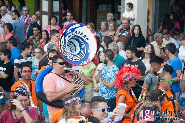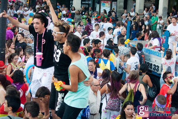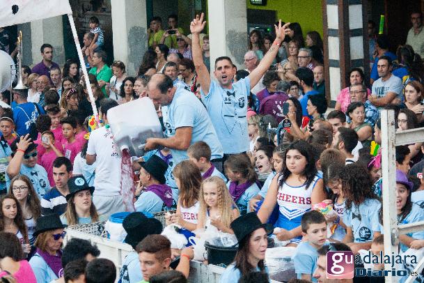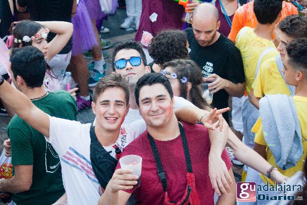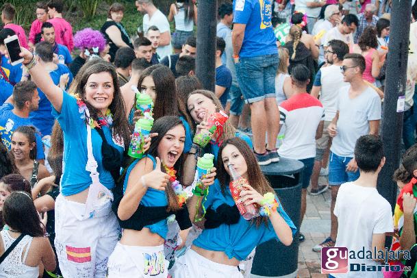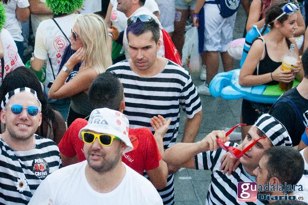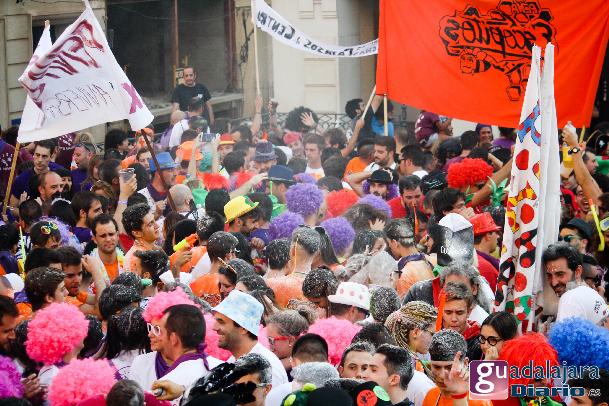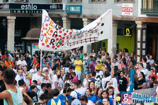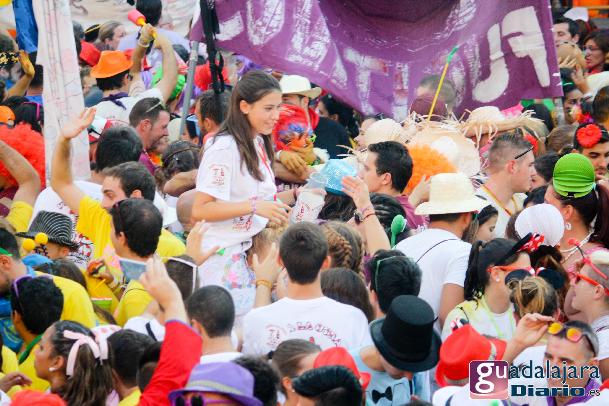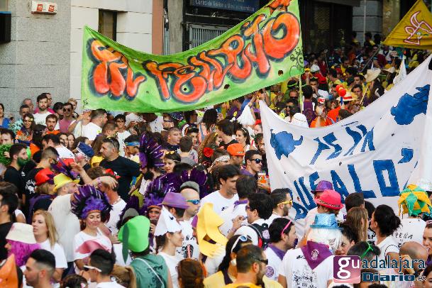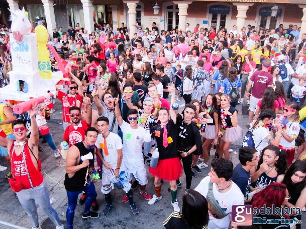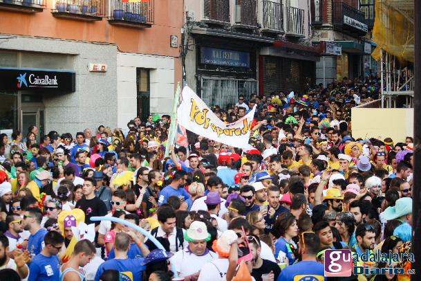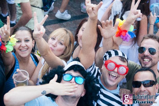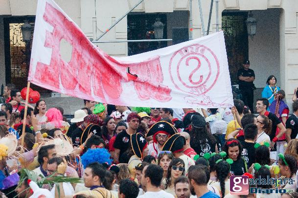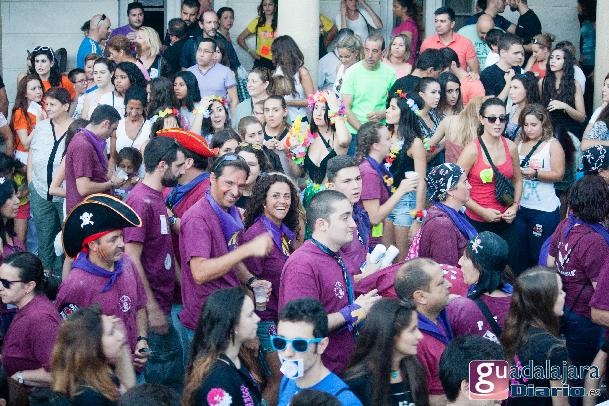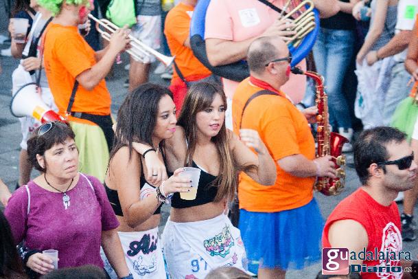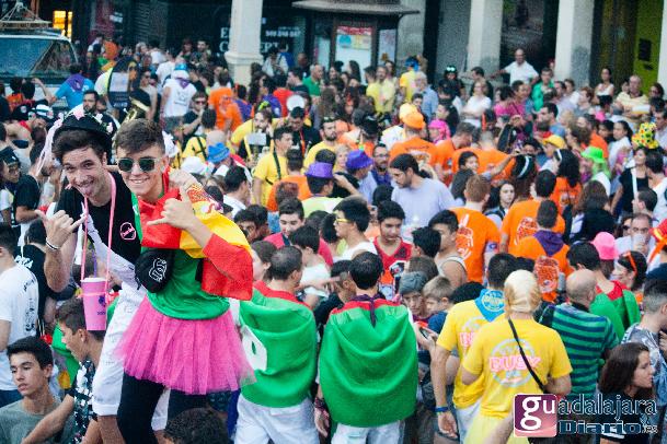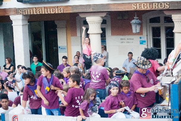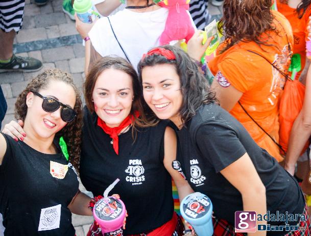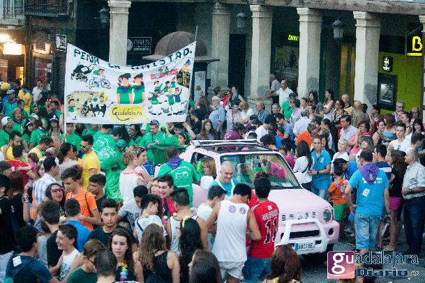 Tras el chupinazo comenzó el desfile de peñas que como siempre no pudo ser más modesto y previsible. Ya se sabe que en esta provincia el que quiera ver carrozas mejor que se vaya el domingo a las fiestas de Azuqueca. Pero las fiestas de Guadalajara tienen también otras virtudes, como es la gran participación de la gente y que la fiesta se vive en la calle.