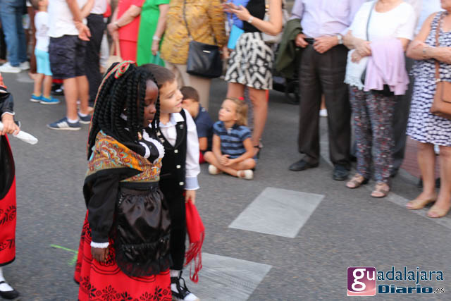 Centenares de niños y niñas participaron en la procesión.La devoción y el cariño de miles de arriacenses por su patrona perpétua, la Virgen de la Antigua, se evidenció con una masiva asistencia a la procesión, con muchas personas ataviadas con trajes regionales de alcarreños y alcarreñas, a los que se suman algunos de Extremadura, pues su Casa en Guadalajara nunca falta en el día que también se celebra la virgen de Guadalupe.