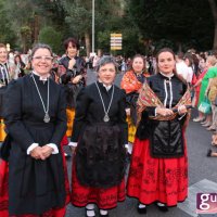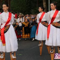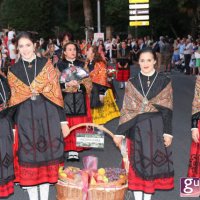 En grandes cestas se llevaron los frutos con las ofrendas que hacen los barrios de la ciudad, asociaciones y algunos pueblos de la provincia. Tampoco faltaron los zancudos del grupo de bailes de La Cotilla.
