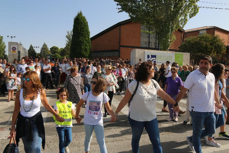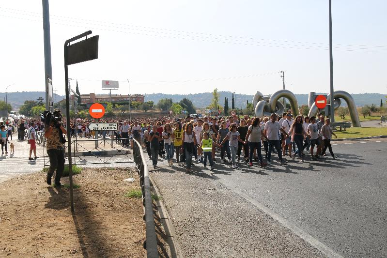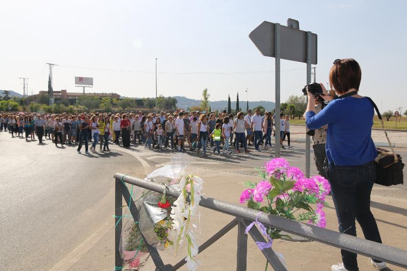 Y así fue que esta mañana más de mil quinientas personas se fueron concentrando en el Colegio Diocesano para participar en estas marcha contra lo que los padres llaman "no más accidentes evitables". La Policía Local cortó el tráfico en las vías de servicio de la glorieta, y los manifestantes cruzaron bajo el viaducto, muy cerca de esa primera curva a la derecha, para acceder al sentido Zaragoza, que es donde el camión arrolló a la joven que salía del colegio con otros alumnos que acaban de franquear el paso peatonal. Pero quedaba Patricia y el conductor no la vio. En el lugar se han colocado varios ramos de flores que lo recuerdan.