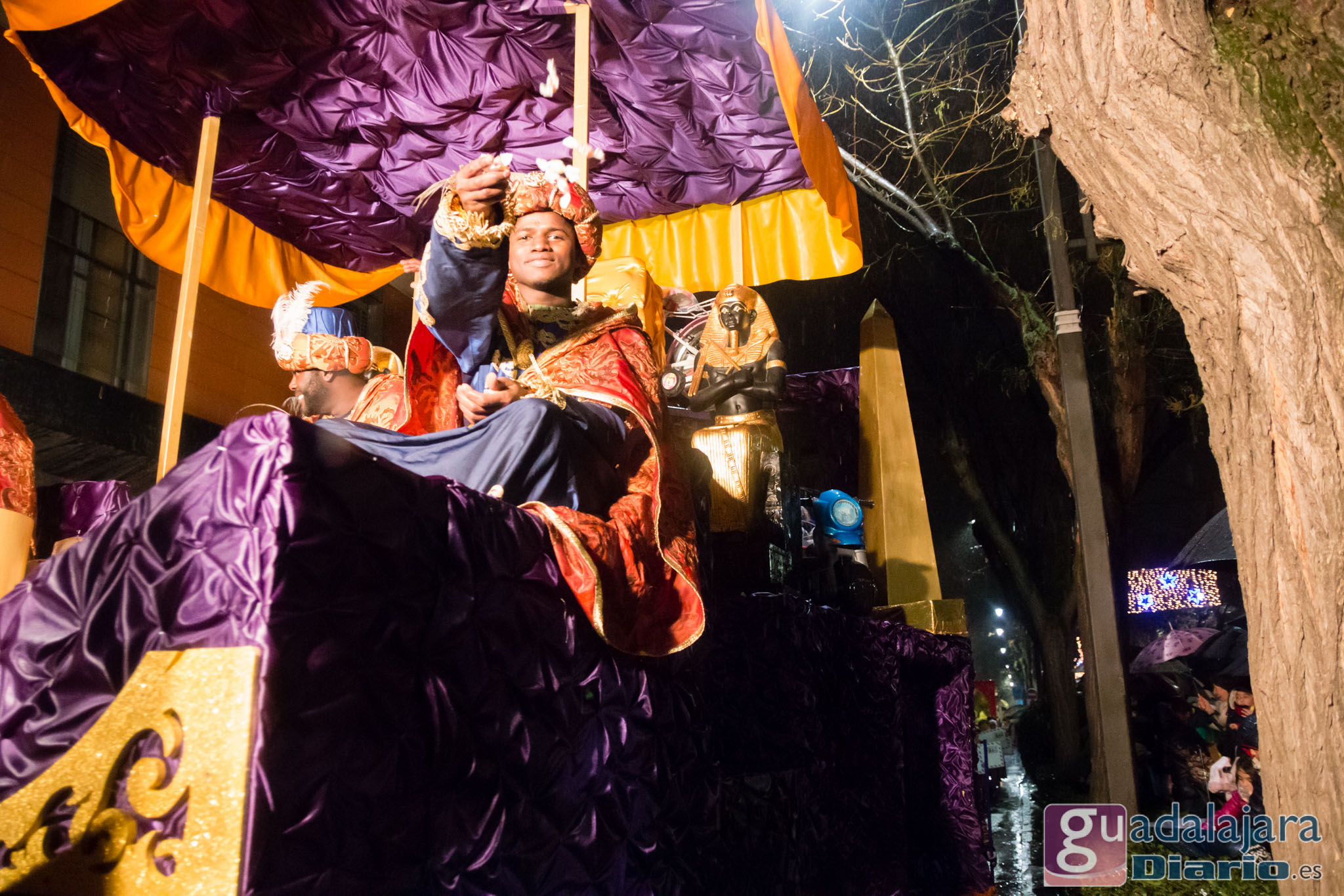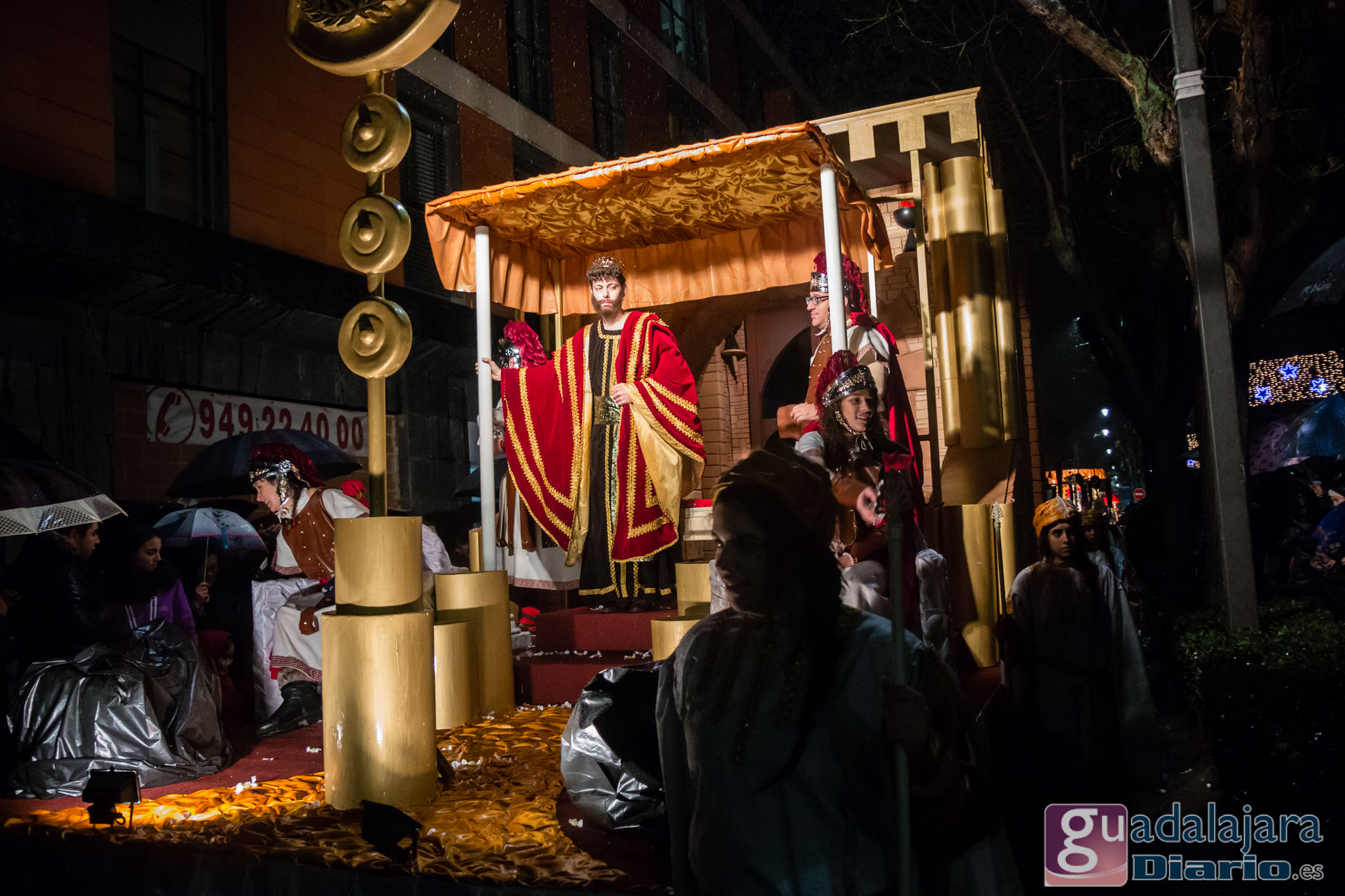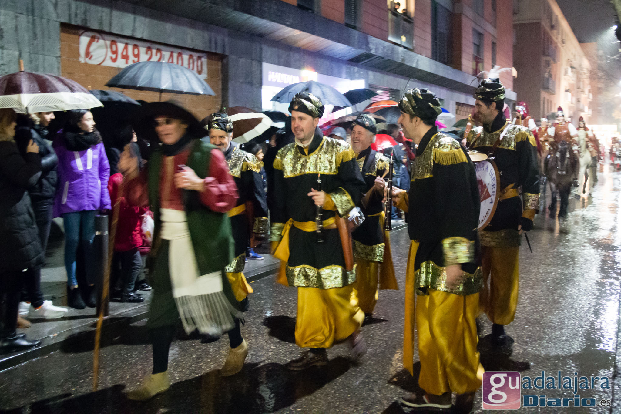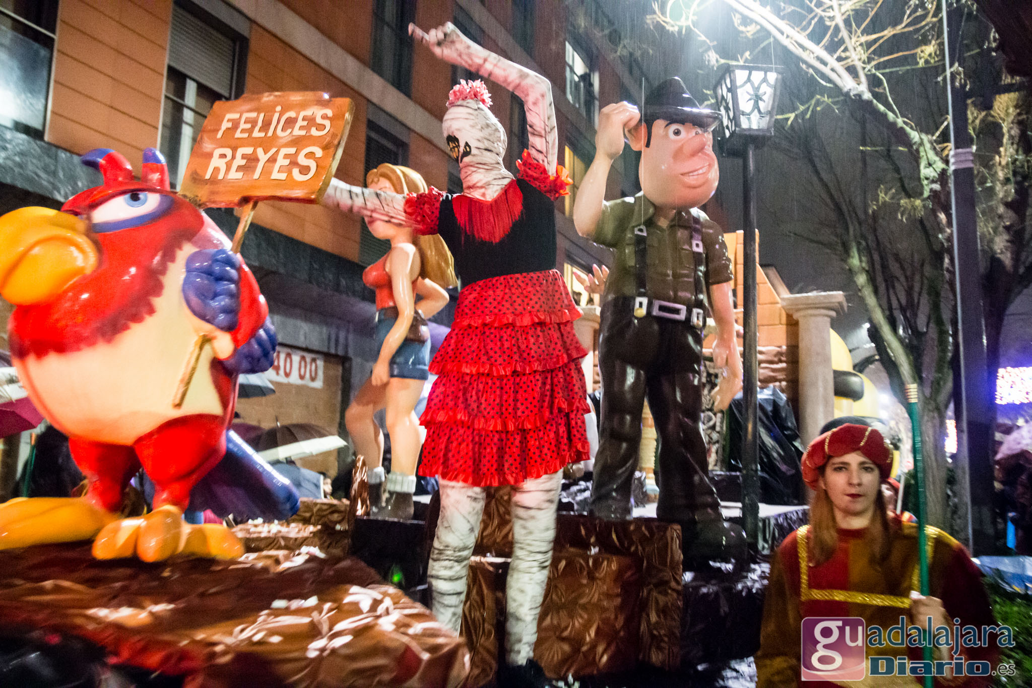 Estamos en sequía severa en las Mancomunidad de Aguas del Sorbe; hemos dejado atrás el mes de diciembre más seco en los últimos 77 años;la cabecera del Tajo está solo al 9,4% para terminar del año; y en las iglesias los sacerdotes hacen ruegos para que llueva. Así que los Reyes Magos hicieron uso de sus poderes y no les importó llegar a Guadalajara bajo un manto de agua: leve al principio de comenzar la Cabalgata y más intensa cuando llevabamos una hora de desfile.