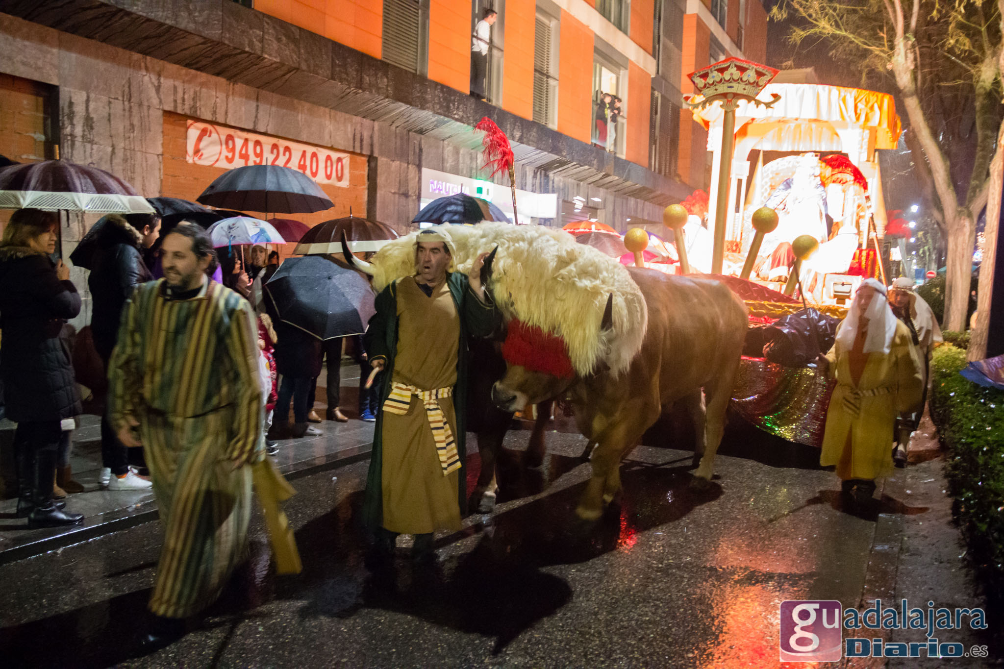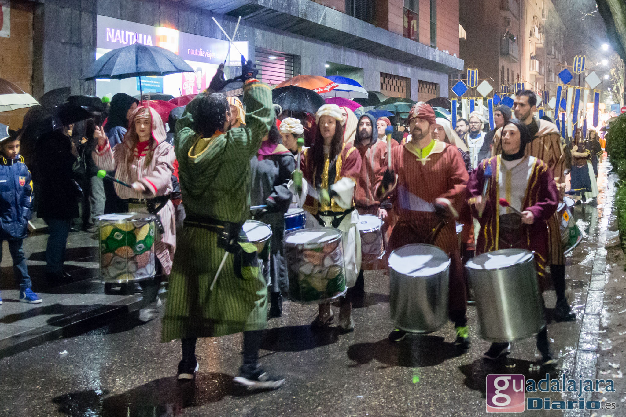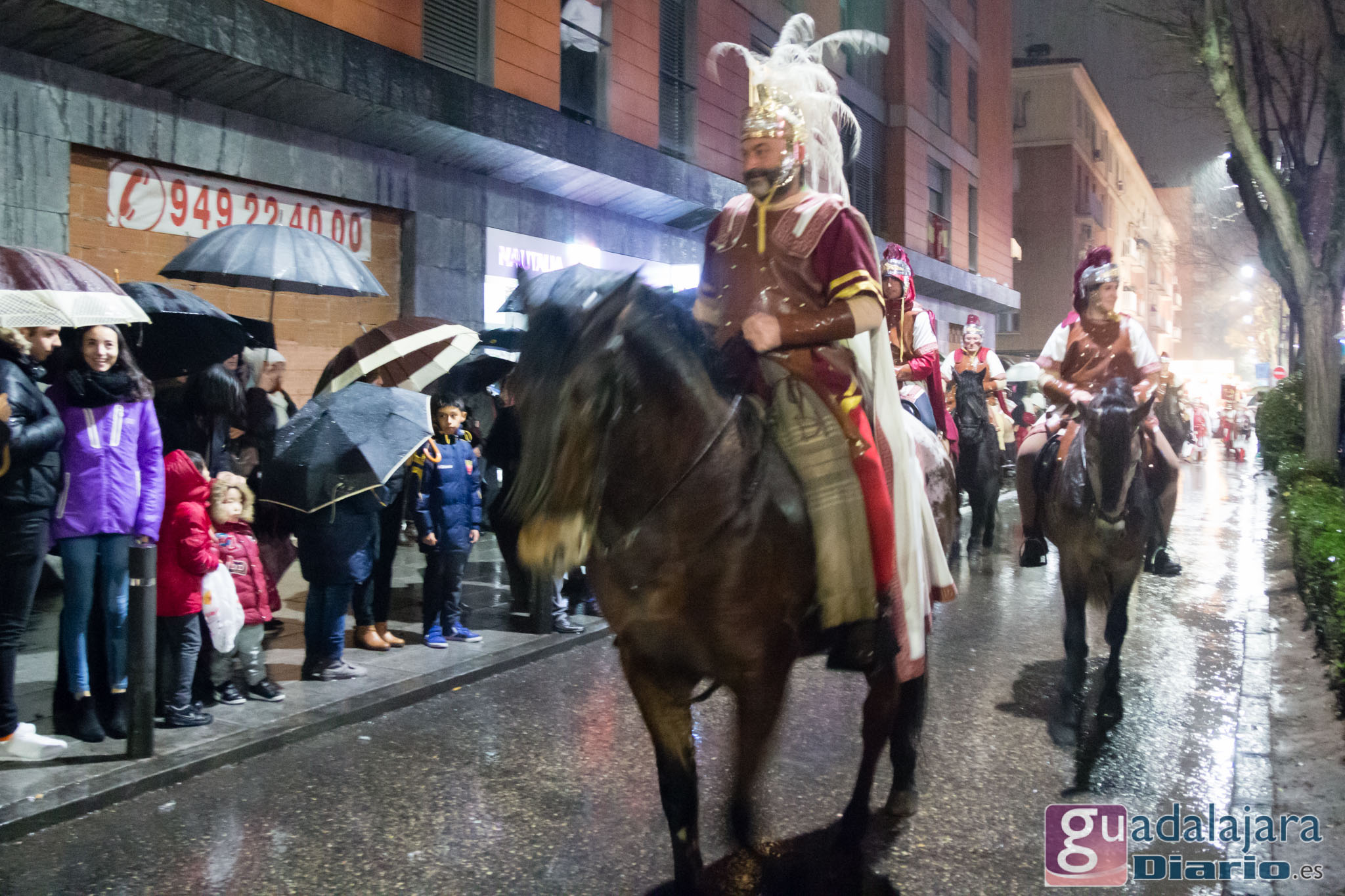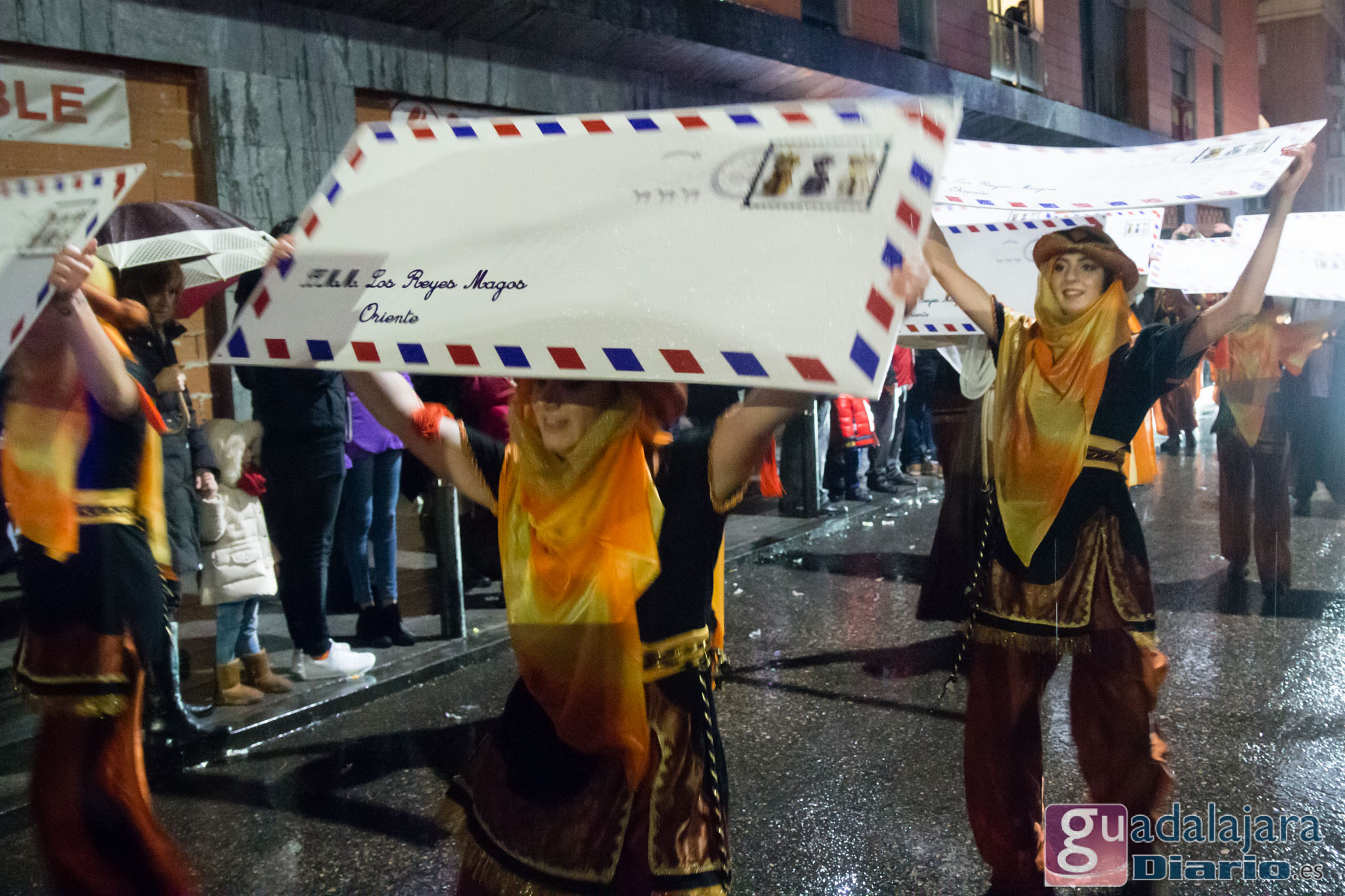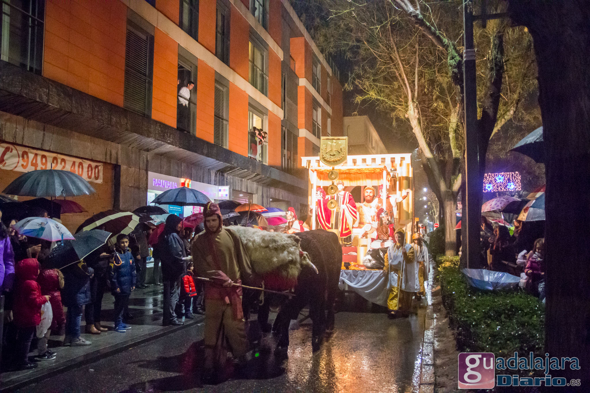 Estamos en sequía severa en las Mancomunidad de Aguas del Sorbe; hemos dejado atrás el mes de diciembre más seco en los últimos 77 años;la cabecera del Tajo está solo al 9,4% para terminar del año; y en las iglesias los sacerdotes hacen ruegos para que llueva. Así que los Reyes Magos hicieron uso de sus poderes y no les importó llegar a Guadalajara bajo un manto de agua: leve al principio de comenzar la Cabalgata y más intensa cuando llevabamos una hora de desfile.