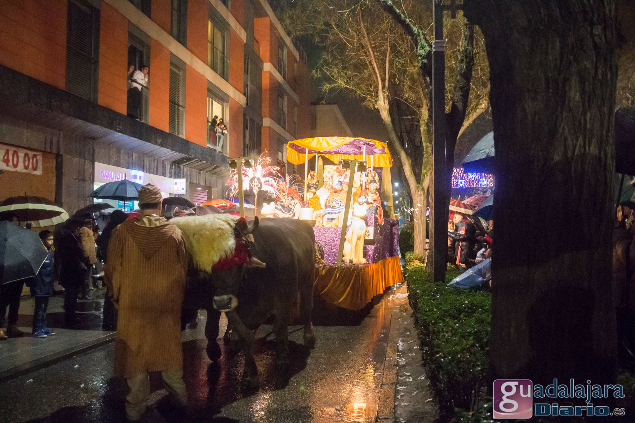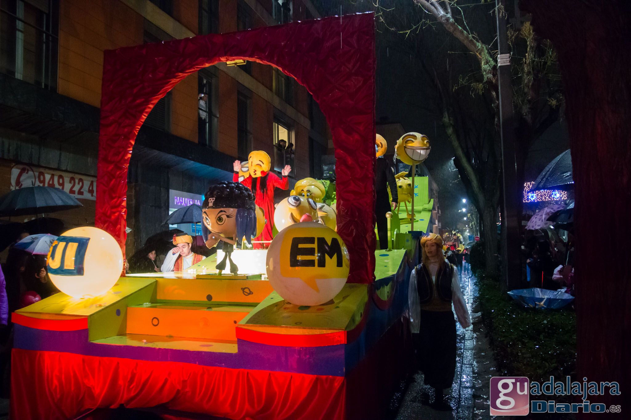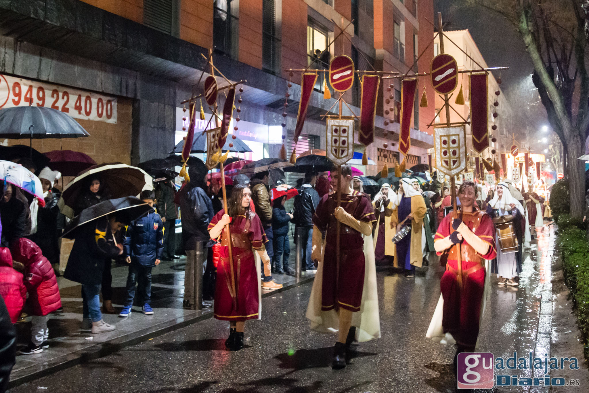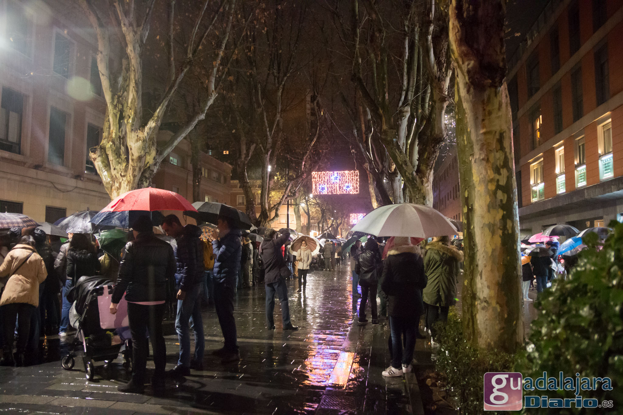 Estamos en sequía severa en las Mancomunidad de Aguas del Sorbe; hemos dejado atrás el mes de diciembre más seco en los últimos 77 años;la cabecera del Tajo está solo al 9,4% para terminar del año; y en las iglesias los sacerdotes hacen ruegos para que llueva. Así que los Reyes Magos hicieron uso de sus poderes y no les importó llegar a Guadalajara bajo un manto de agua: leve al principio de comenzar la Cabalgata y más intensa cuando llevabamos una hora de desfile.