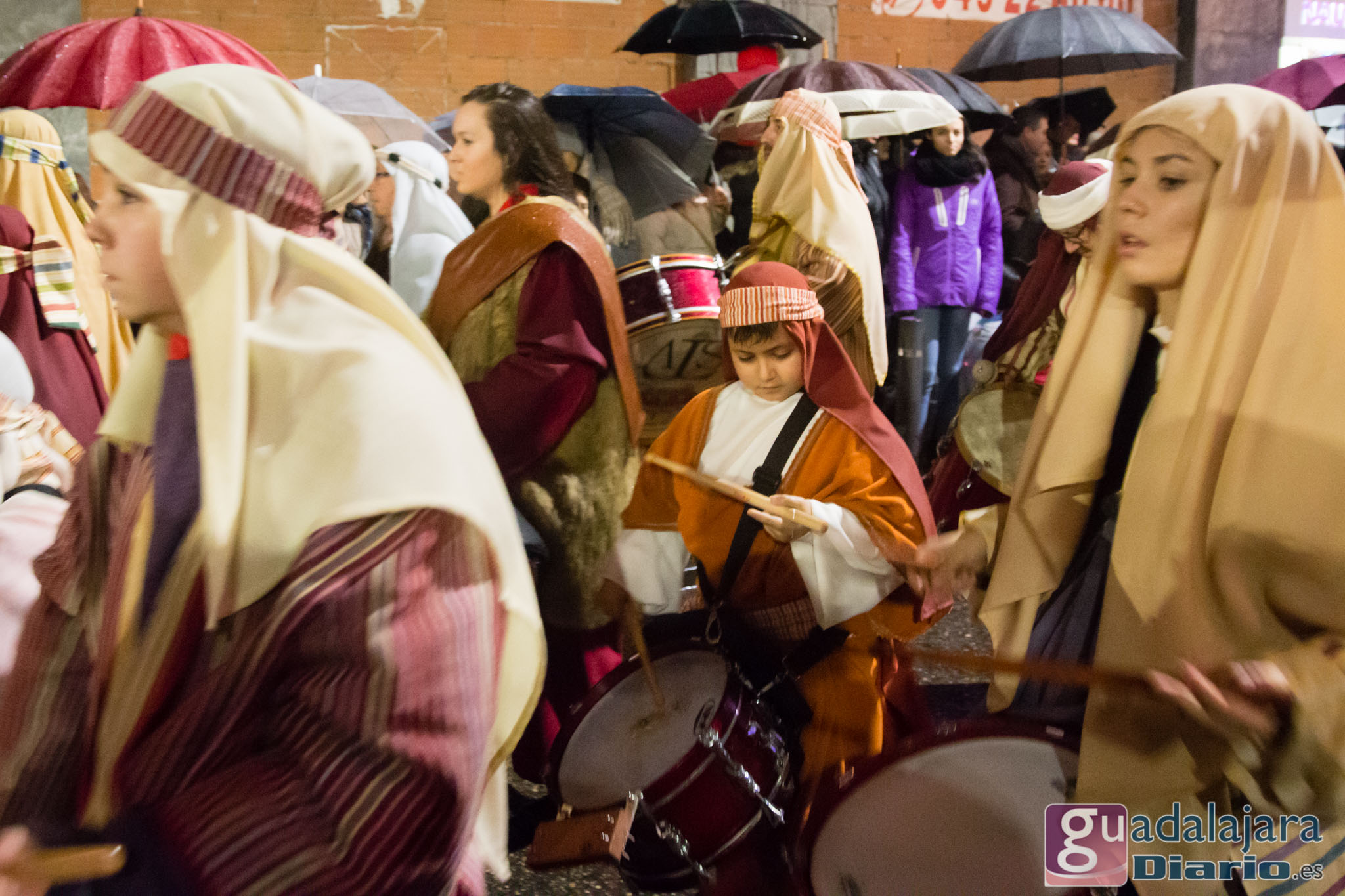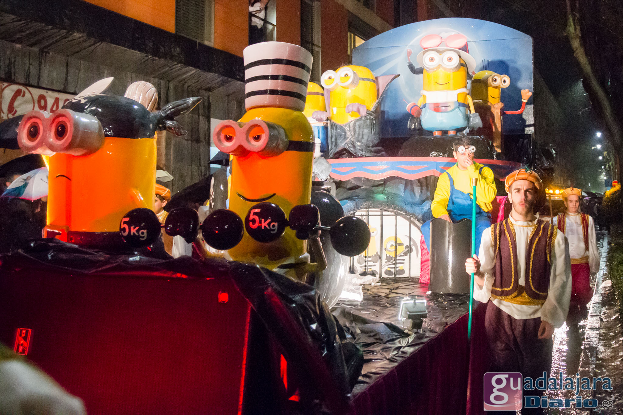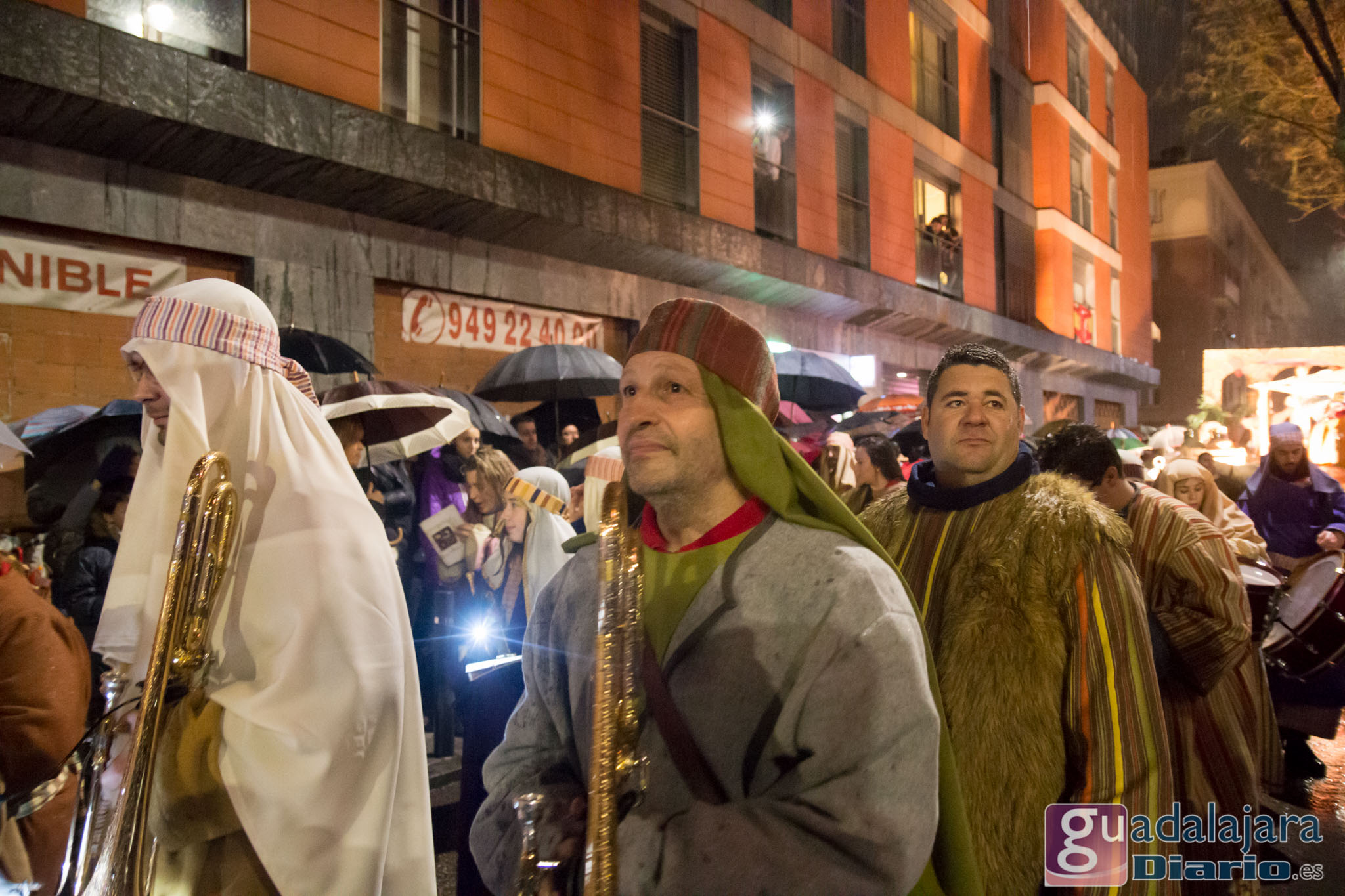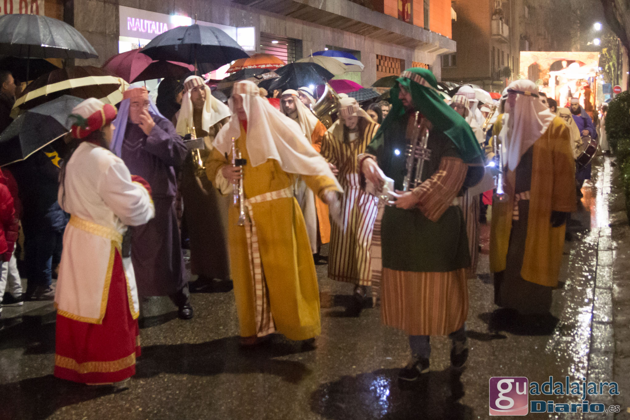 Estamos en sequía severa en las Mancomunidad de Aguas del Sorbe; hemos dejado atrás el mes de diciembre más seco en los últimos 77 años;la cabecera del Tajo está solo al 9,4% para terminar del año; y en las iglesias los sacerdotes hacen ruegos para que llueva. Así que los Reyes Magos hicieron uso de sus poderes y no les importó llegar a Guadalajara bajo un manto de agua: leve al principio de comenzar la Cabalgata y más intensa cuando llevabamos una hora de desfile.