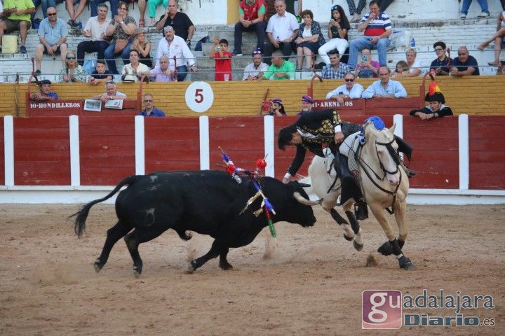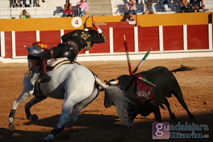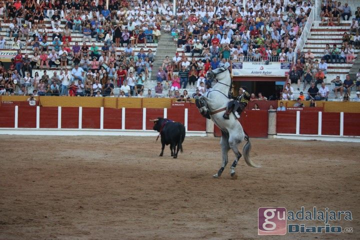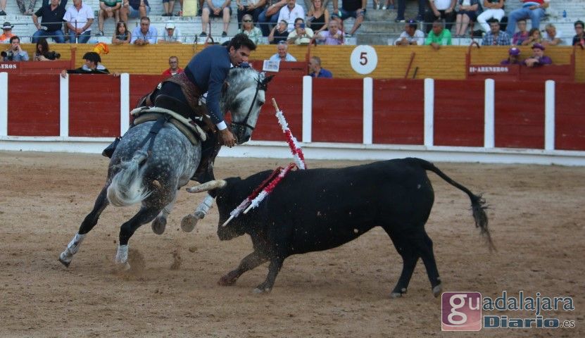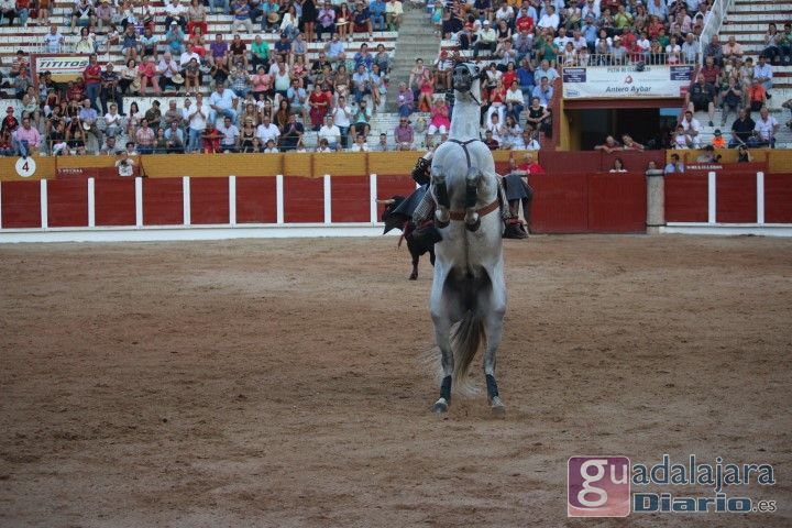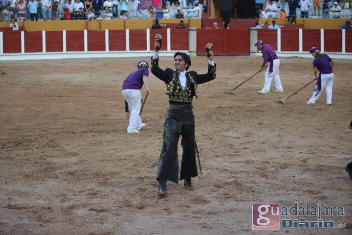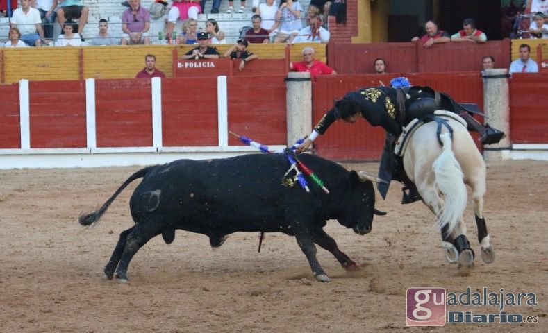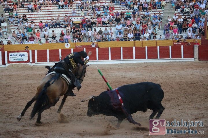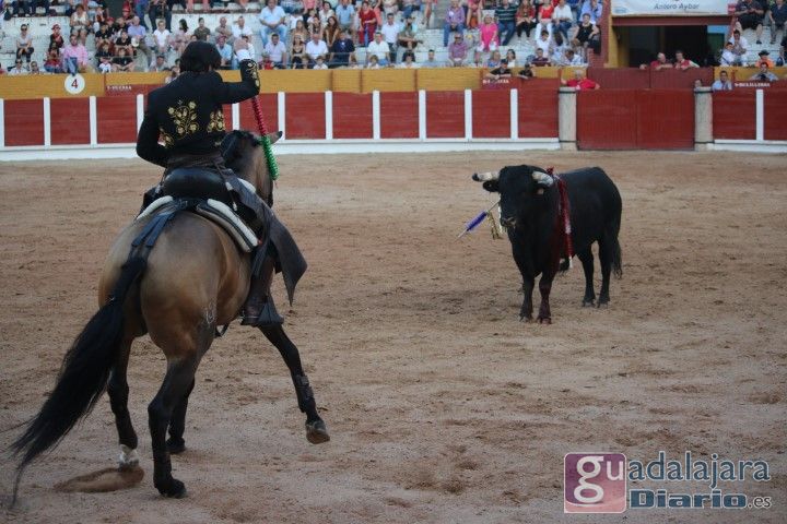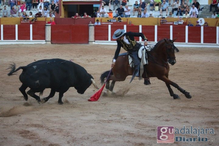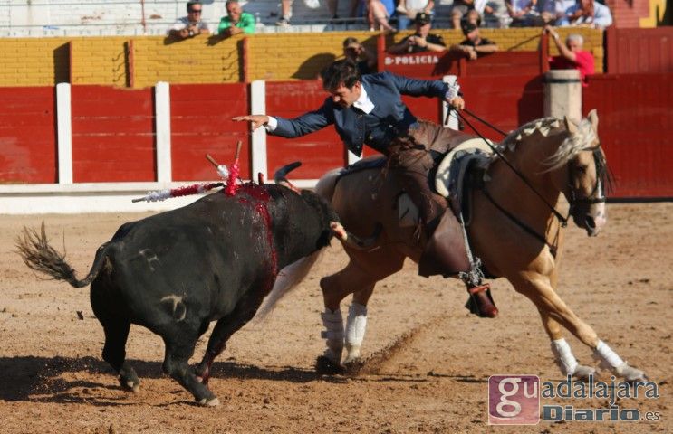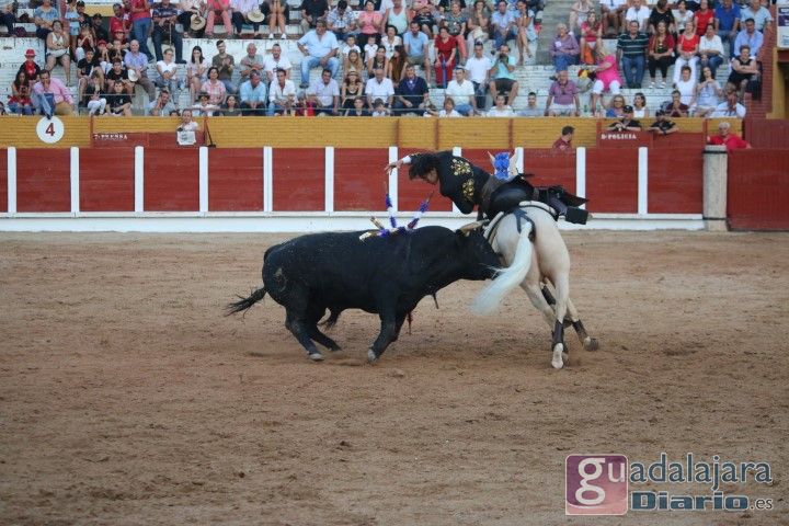 Sergio Galán estuvo bien, pero no estuvo. No transmitió no vibró nadie con él. En parte por sus toros, claro está, pero en parte porque no surgió esa magia de su Feria de Guadalajara de hace un lustro, cuando fue uno de los pilares y dejó momentos magníficos de un rejoneador en su mejor momento. Cortó una oreja porque con su experiencia y buena cuadra le sobra.Lea Vicent no estuvo fina con los aceros./ Guadalajara Diario.