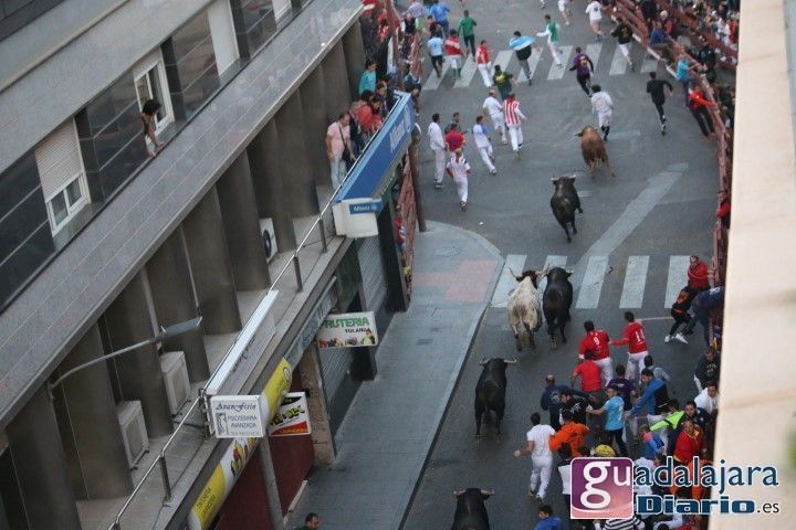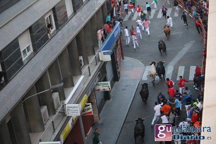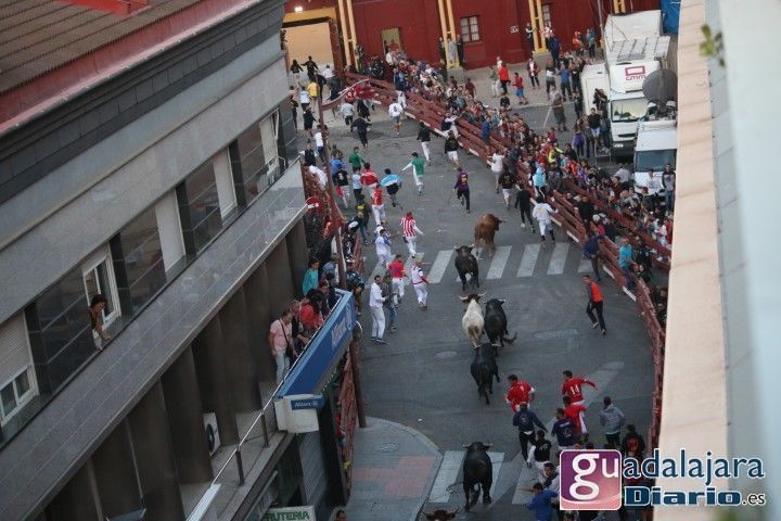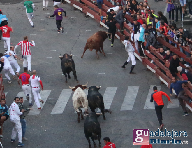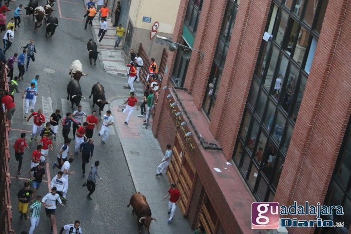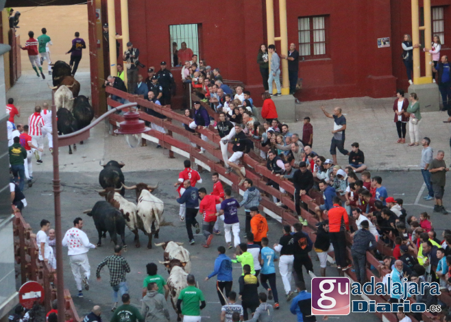 Ya en el ruedo, los toros y cabestros dieron media vuelta al ruedo introduciéndose en los corrales sin mayores problemas, excepto el último toro con el número 36, lo que provocó que el encierro se alargó hasta los 10 minutos y 40 segundos, porque este toro se entretuvo saludando a todos los vecinos de Guadalajara que llenaban tres cuartos de plaza. El toro se encontró cómodo en coso de Las Cruces y se dio decenas de vueltas a la plaza sin casi mirar la puerta de toriles y eso que tanto pastores como el empresario Jose Ignacio Ramos, con el capote en la mano, lo intentaron de todas las formas posibles. Ha sido el segundo encierro más largo de la historia de estos festejos.