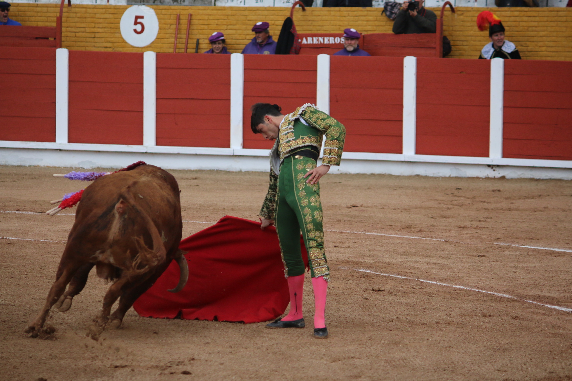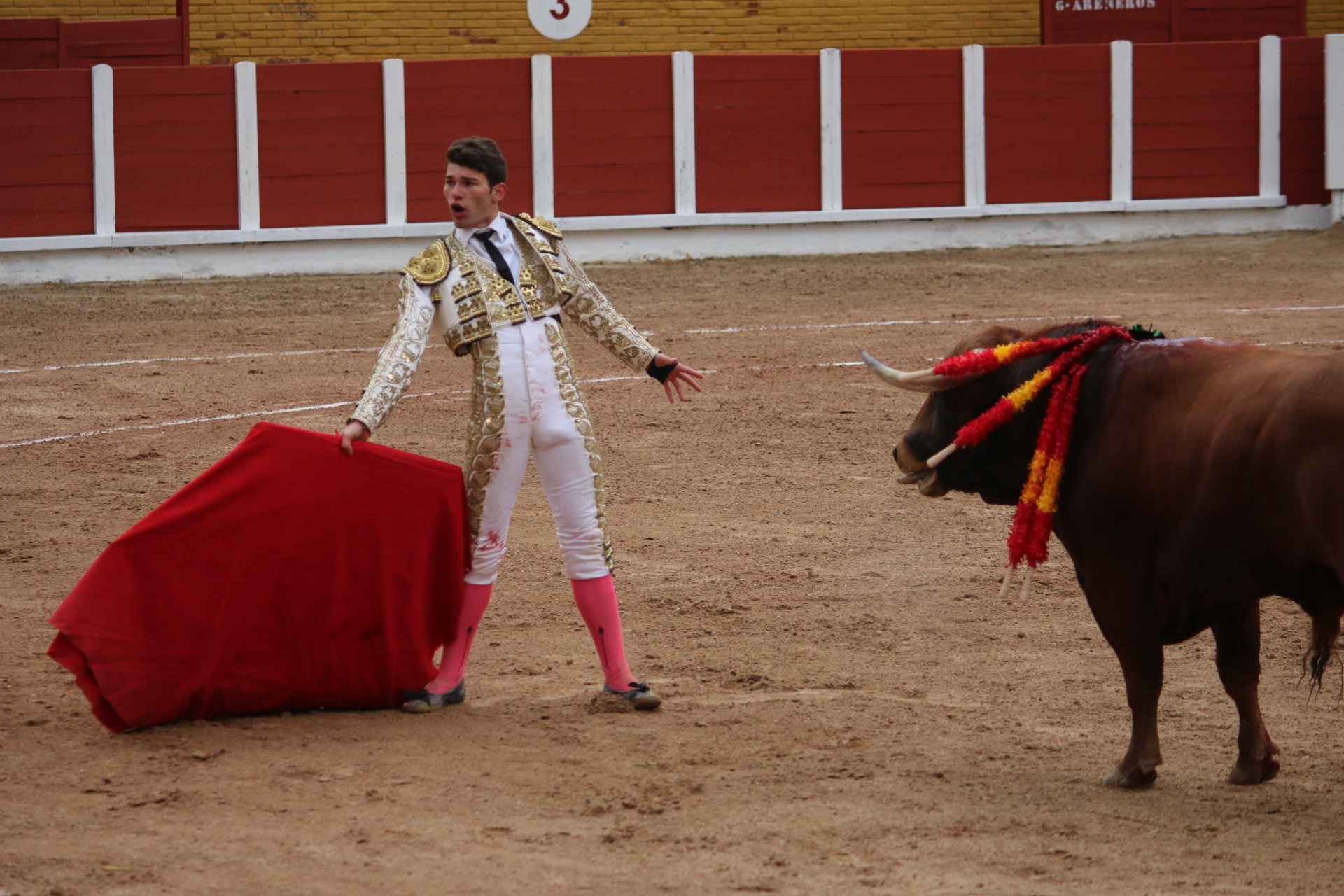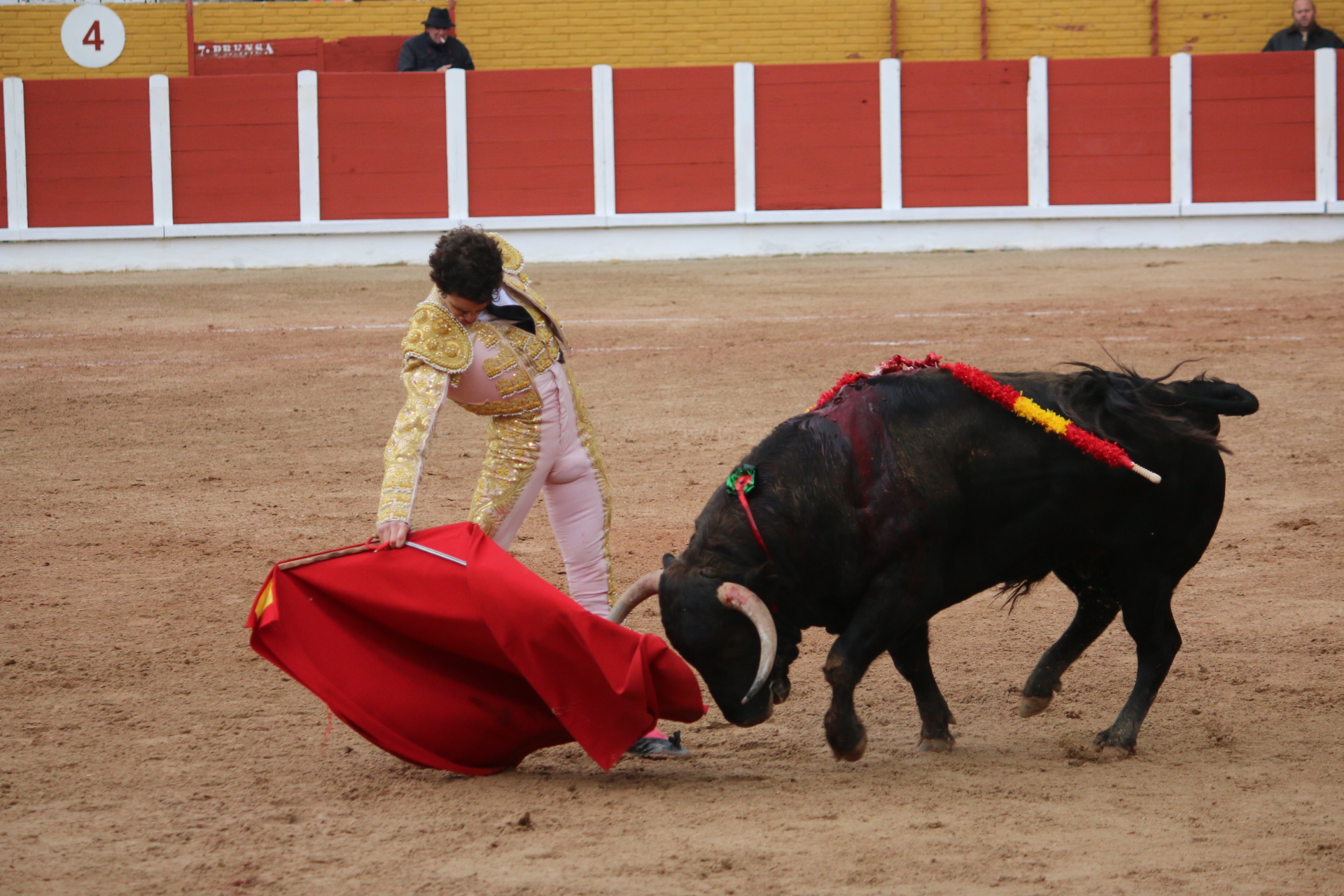 Álvaro Sánchez estuvo mejor en su segundo que su primero, porque le hablaron mejor o él lo entendió. Tiene cosas buenas pero va llevar otro tiempo de cocción. Lo primero, darle tranquilidad y decirle que las prisas no son buenas consejeras. Tiene una cosa muy buena; un arrojo desproporcionado. Ve al novillo para hacerle las cosas en cualquier sitio. No necesita casi cuadrilla porque se ve capaz. Eso está bien, pero sin prisa. Dio muletazos muy buenos que sorprendieron sobre todo en su segundo pero sin continuidad. Una piedra que habrá que pulir para ver que tiene dentro. El cabanillero Álvaro Sánchez da un pase mirando al tendido./ Guadalajara Diario.