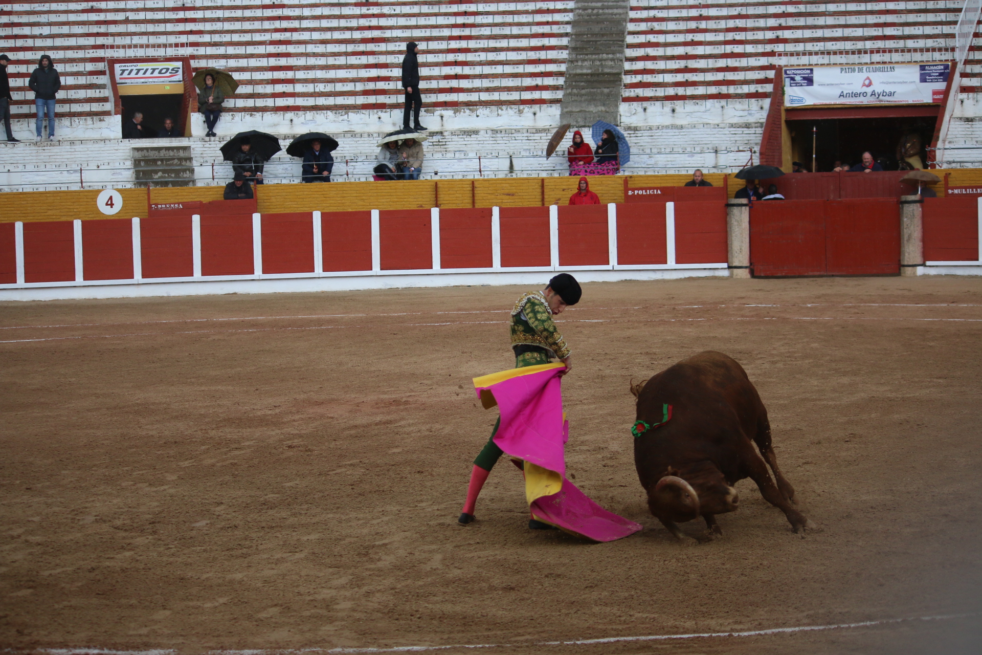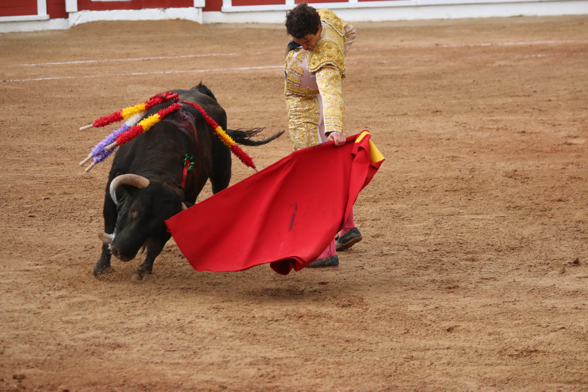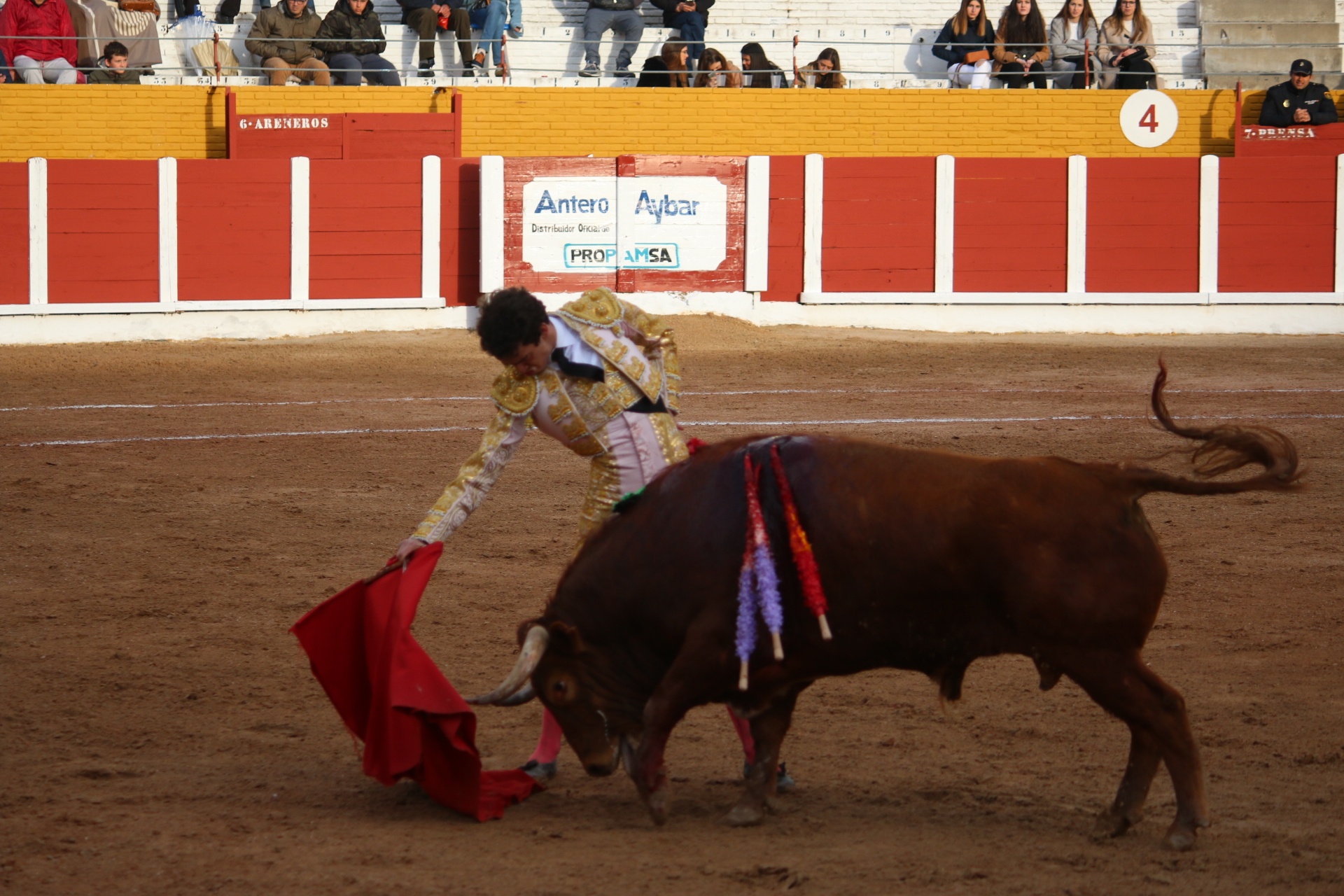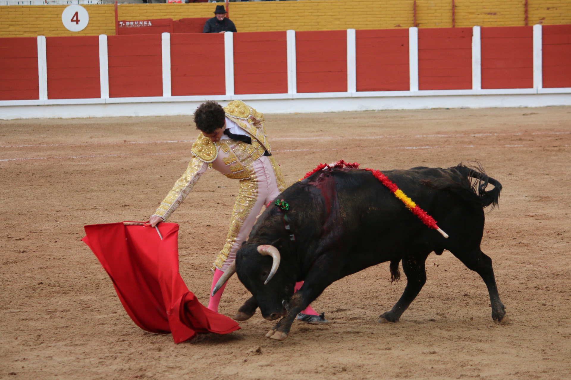 Álvaro Sánchez estuvo mejor en su segundo que su primero, porque le hablaron mejor o él lo entendió. Tiene cosas buenas pero va llevar otro tiempo de cocción. Lo primero, darle tranquilidad y decirle que las prisas no son buenas consejeras. Tiene una cosa muy buena; un arrojo desproporcionado. Ve al novillo para hacerle las cosas en cualquier sitio. No necesita casi cuadrilla porque se ve capaz. Eso está bien, pero sin prisa. Dio muletazos muy buenos que sorprendieron sobre todo en su segundo pero sin continuidad. Una piedra que habrá que pulir para ver que tiene dentro. El cabanillero Álvaro Sánchez da un pase mirando al tendido./ Guadalajara Diario.
