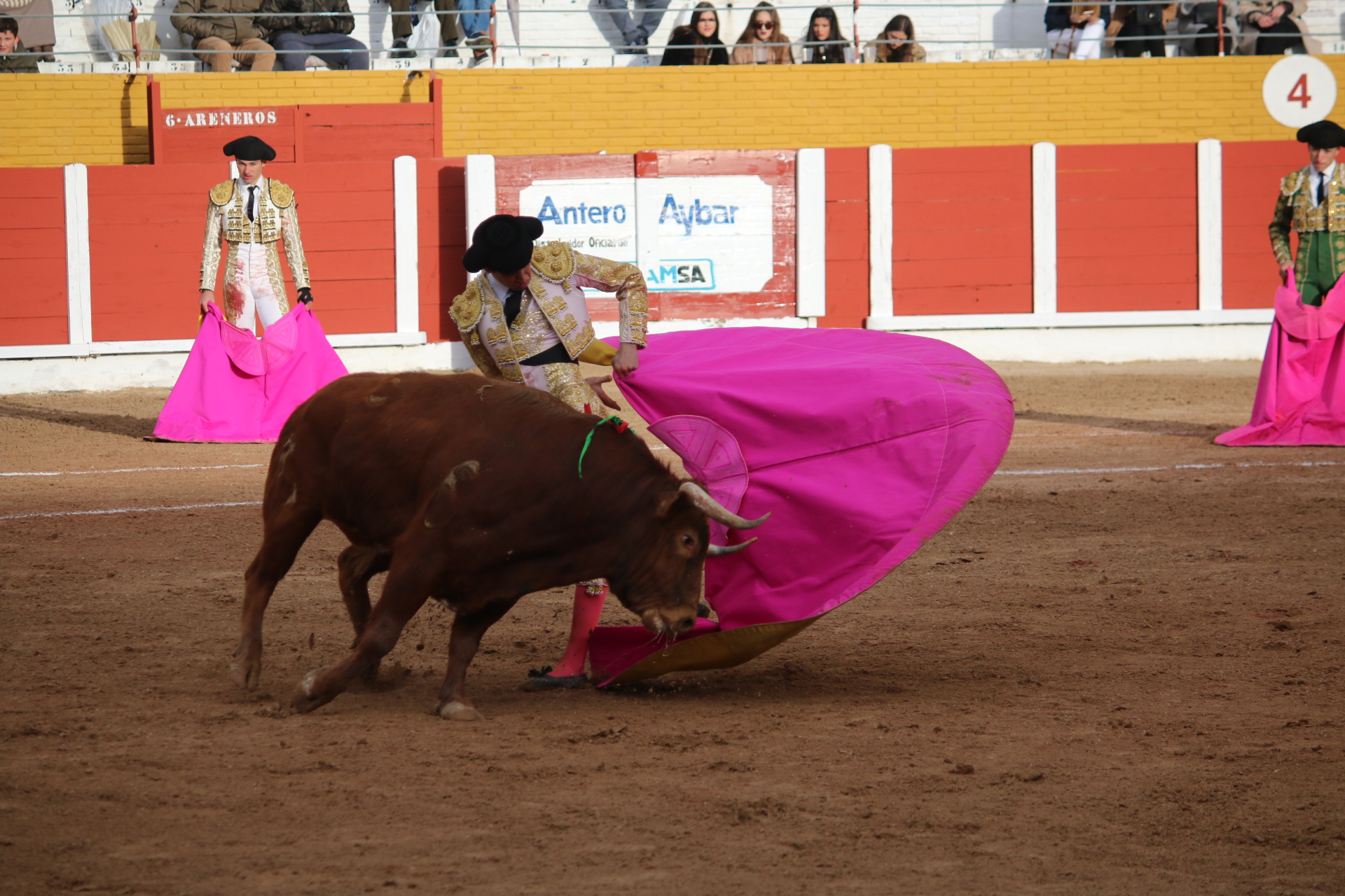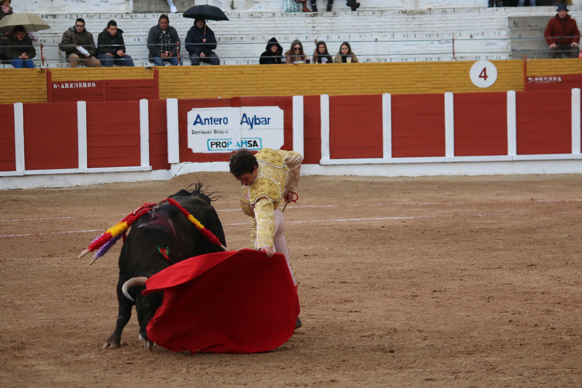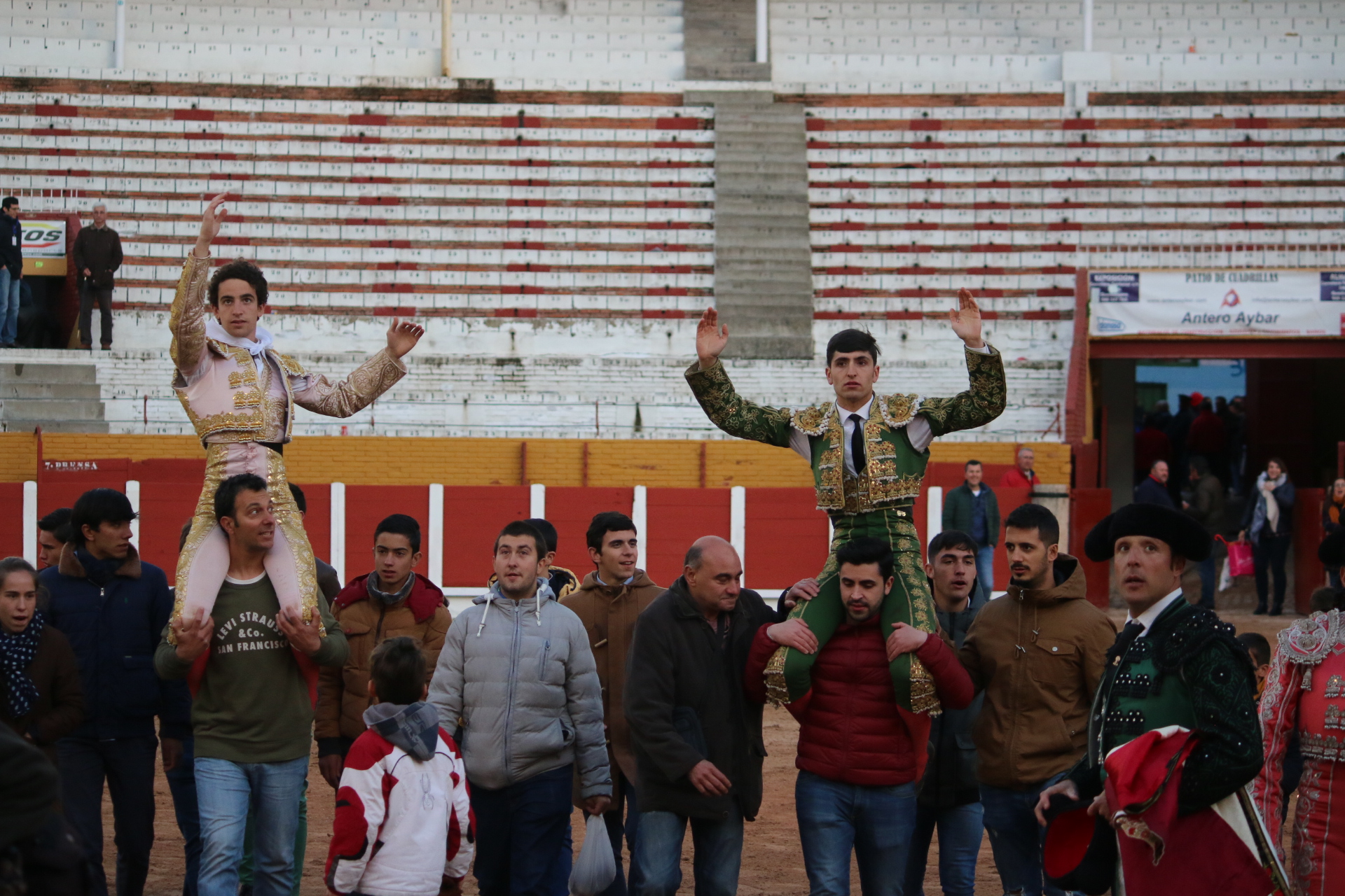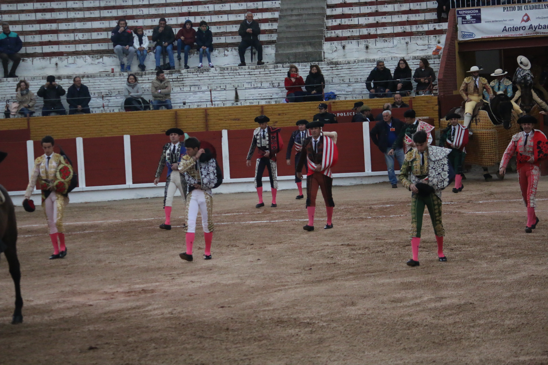 Adrián Henche paseó los trofeos con un capote que perteneció a Iván Fandiño./ Guadalajara Diario.Buena actuación de Víctor Hernandez y dos más irregulares de Adrián Henche y Álvaro Sánchez. Buena novillada de la ganadería Polo Sáiz en general. Escaso público en una tarde invernal, muy fría y desapacible.