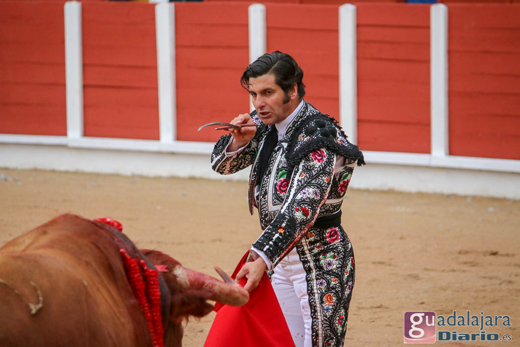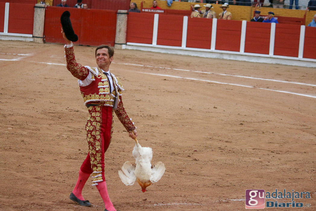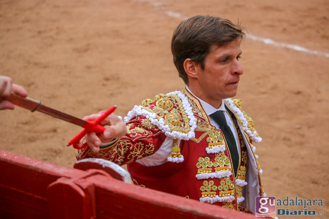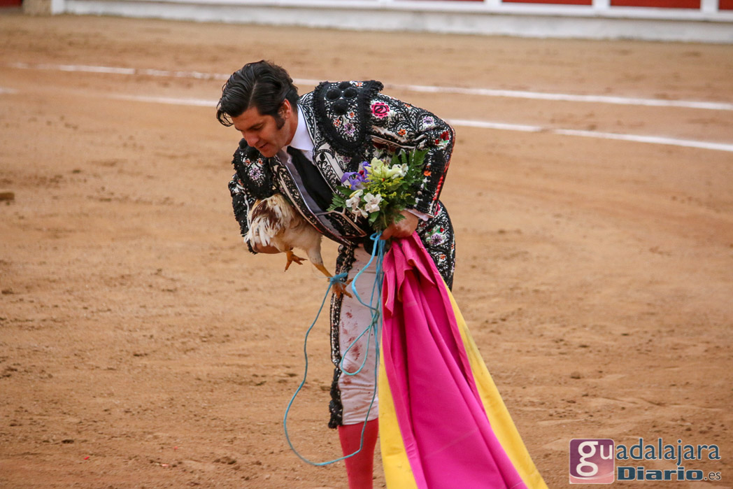 Ángel Téllez salió merecidamente por la puerta grande./ Foto:S. Barra- Guadalajara Diario El torero que tomaba la alternativa se llevó tres orejas pero sobre todo dejó la impresión de ser un torero que puede funcionar. Oreja al “El Juli” en una faena de técnica y temple, y otra a Morante que tuvo que tirar de recursos ante el peor lote. Deslucida corrida de Garcigrande. Galería de fotos en el interior.