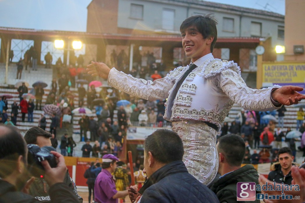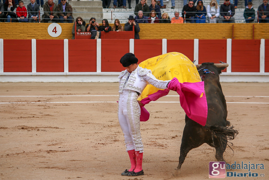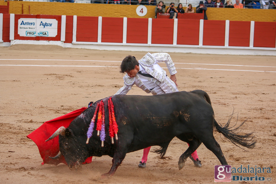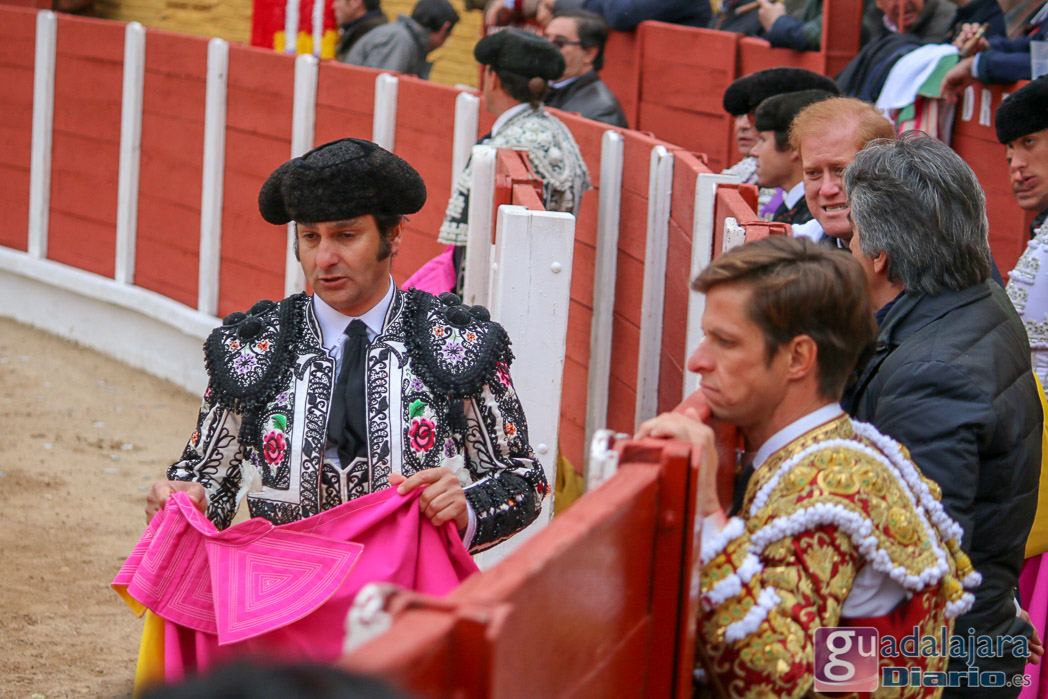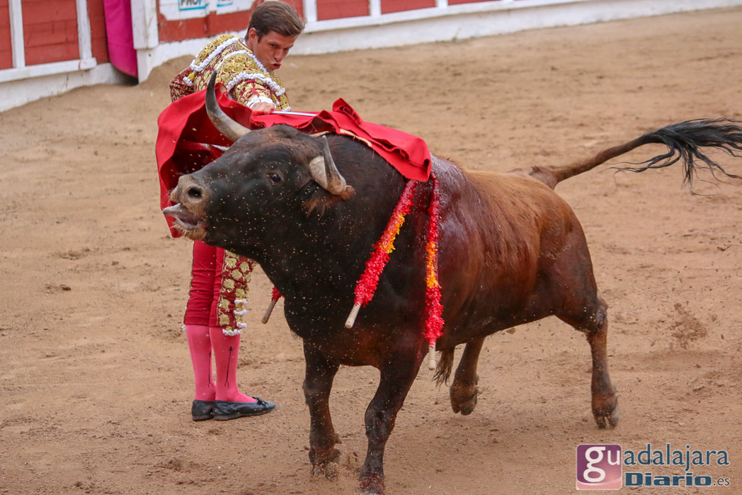 Ángel Téllez salió merecidamente por la puerta grande./ Foto:S. Barra- Guadalajara Diario El torero que tomaba la alternativa se llevó tres orejas pero sobre todo dejó la impresión de ser un torero que puede funcionar. Oreja al “El Juli” en una faena de técnica y temple, y otra a Morante que tuvo que tirar de recursos ante el peor lote. Deslucida corrida de Garcigrande. Galería de fotos en el interior.