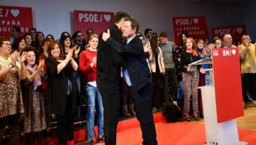 Sánchez y Page se abrazan en un reciente mitin en Toledo.