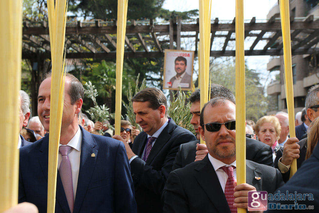 El alcalde con el delegado de la Junta, ambos rivales para la Alcaldía de Guadalajara. En la plaza esperaban, portando grandes palmas, una amplía representación institucional y numerosos candidatos del PP y el PSOE. En la primera fila de la procesión, el alcade de Guadalajara y cabeza de lista al Senado, Antonio Román, con el delegado de la Junta y candidato a la Alcaldía por el PSOE, Alberto Rojo; el presidente del PP regional, Paco Núñez; y la vicepresidenta de la Diputación y cabeza de lista a las regionales, Ana Guarinos. En otras filas, el cabeza de lista a las Regionales por el PSOE, Pablo Bellido; los candidatos al senado Riansares Serrano y Julio García, del PSOE, Juan Pablo Sánchez (PP); el director general de Coordinación de la Junta, Eusebios Robles; y varios concejales del Ayuntamiento del PP y el PSOE, y diputado provinciales.