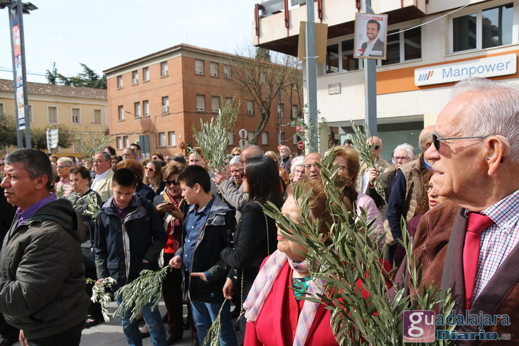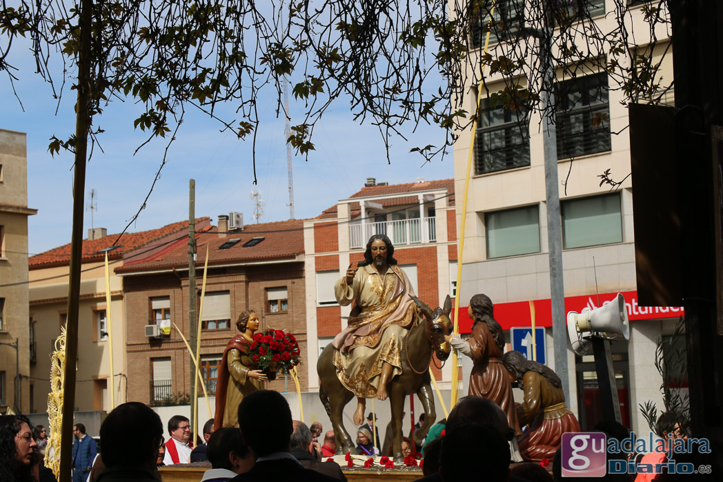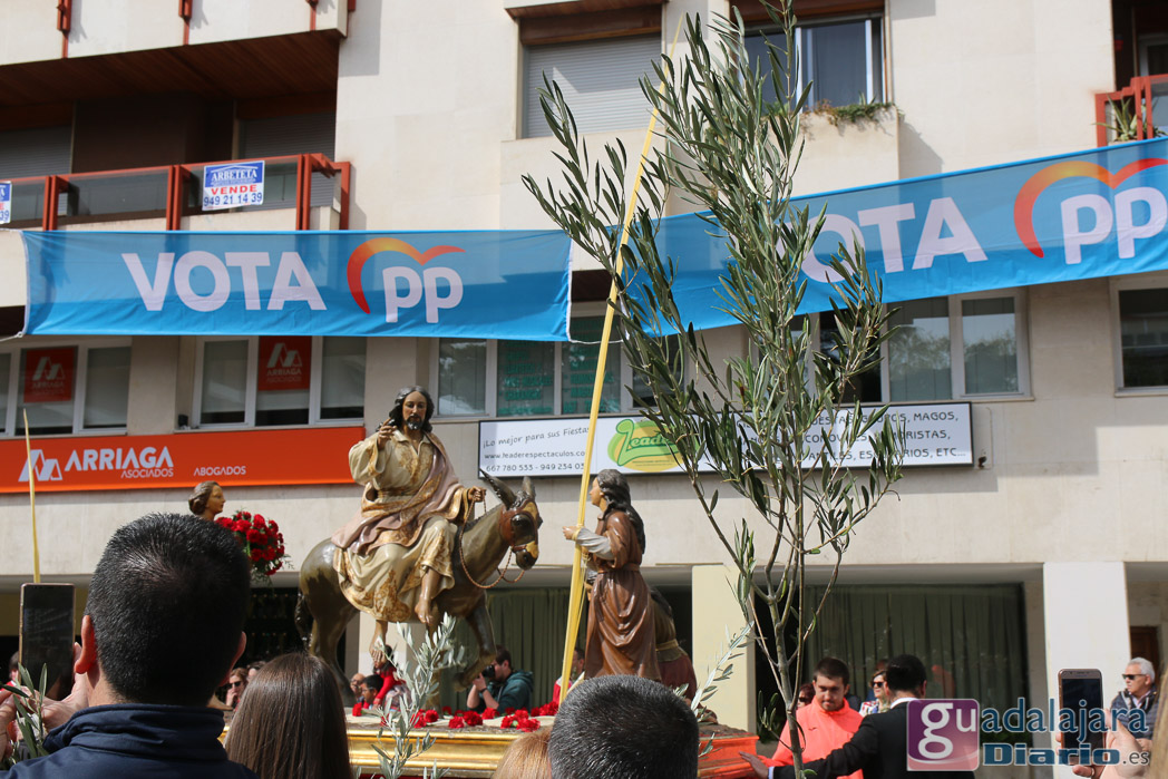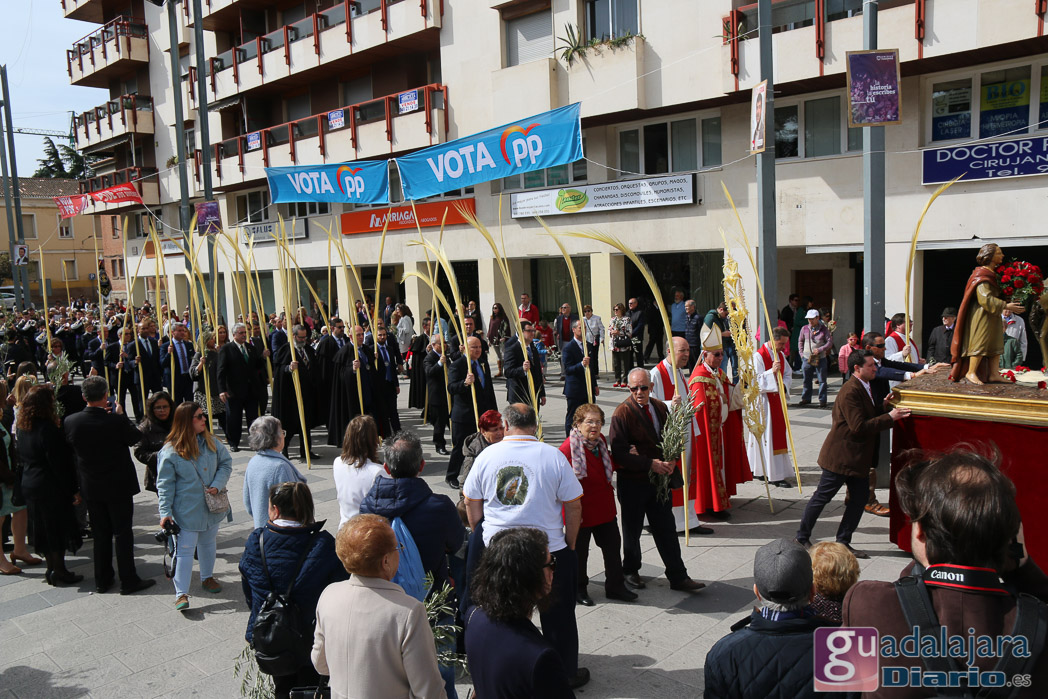 La procesión con la imagen de Jesús entrando en Jerusalén a lomos de una borriquila dio una vuelta por la plaza de Santo Domingo y se dirigió por la Carrera, plaza de Bejanque hasta la iglesia de San Francisco, donde se celebró una misa especial. Desfiló una representación de todas las cofradías de Semana Santa de Guadalajara, con protagonismo especial para Nuestra Señora de la Soledad , cartel de la Semana Santa 2019, y que conmemora el 550 aniversario de su fundación. Una peculiaridad es que a día de hoy la hermandad conserva todos los libros de actas. Poco después de su fundación , en 1575 la Ciudad otorgó la posesión de un solar, situado en lo que es hoy principio del paseo Fernández Iparaguirre, destinado a la construcción de su ermita, que fue saqueada y destruida durante la Guerra Civil.