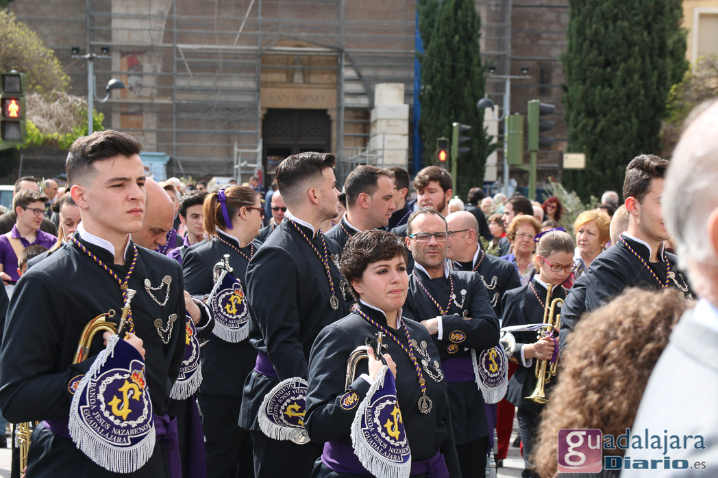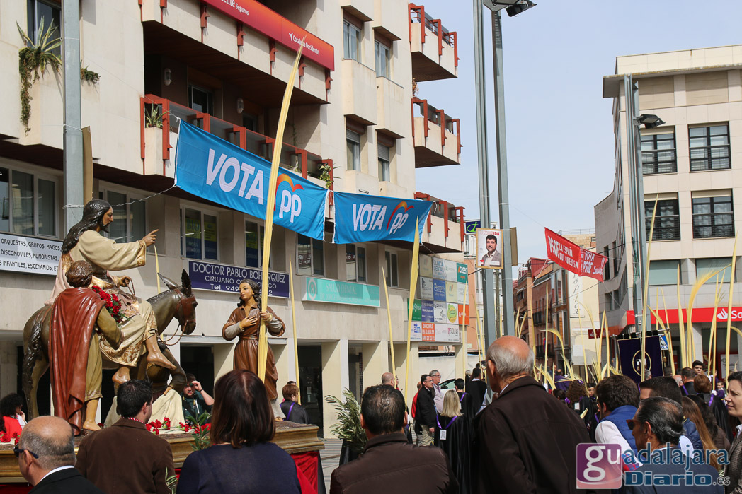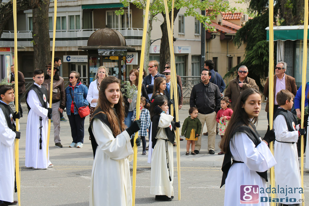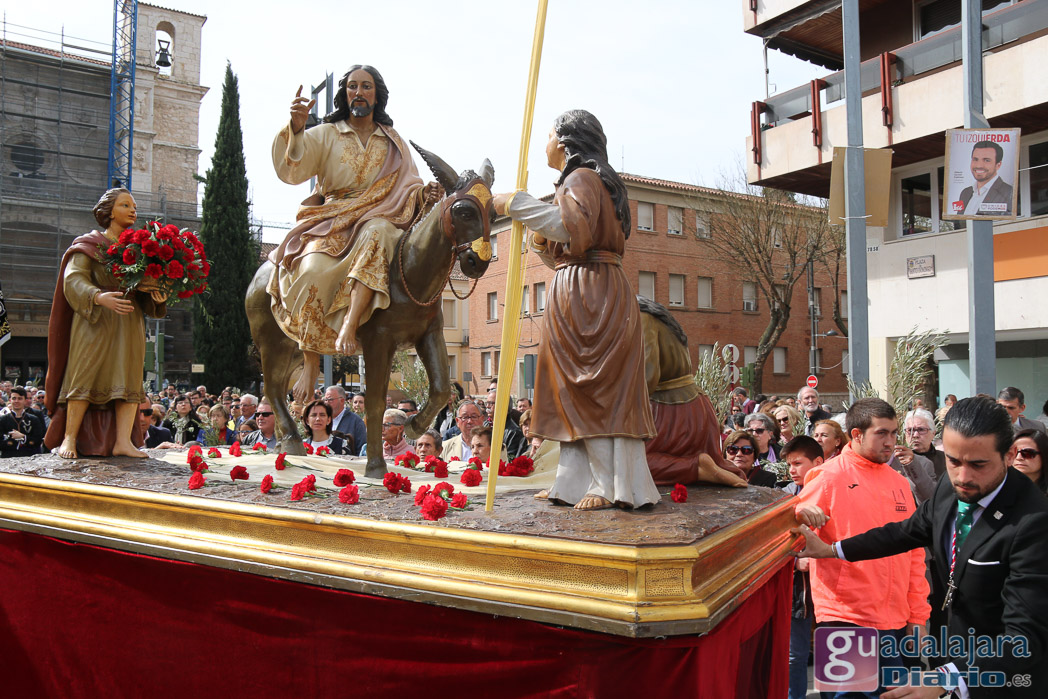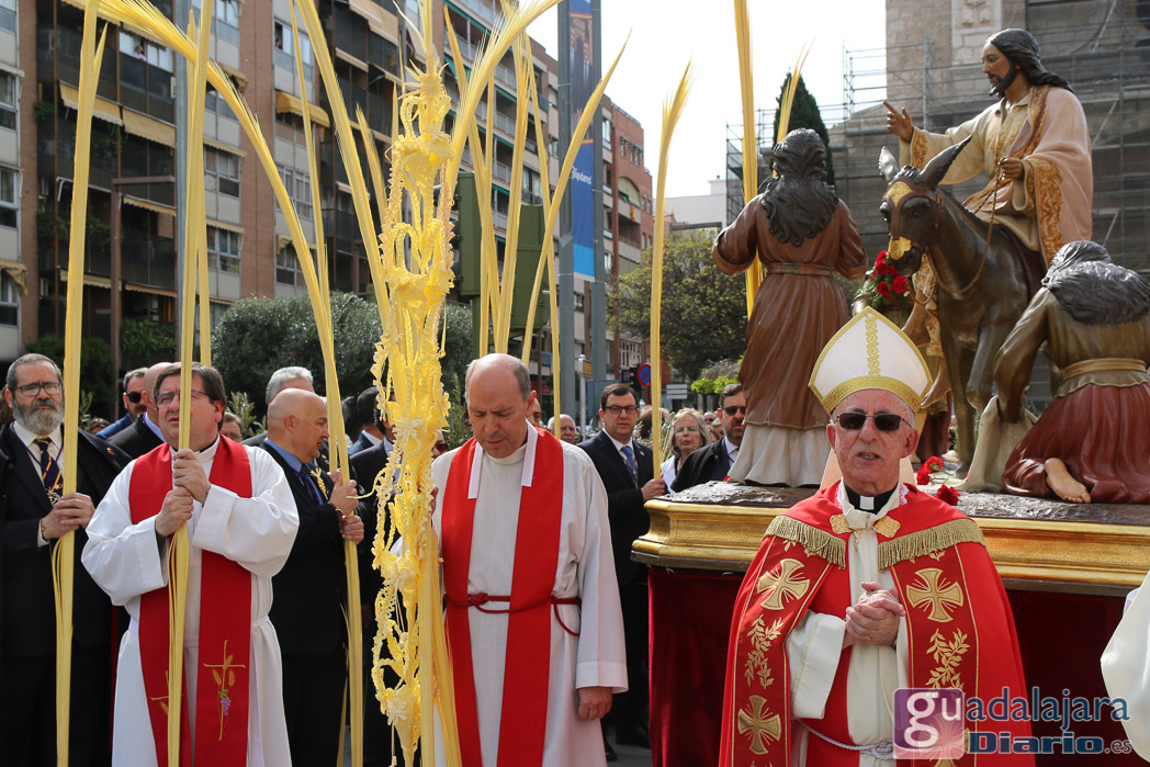 La procesión con la imagen de Jesús entrando en Jerusalén a lomos de una borriquila dio una vuelta por la plaza de Santo Domingo y se dirigió por la Carrera, plaza de Bejanque hasta la iglesia de San Francisco, donde se celebró una misa especial. Desfiló una representación de todas las cofradías de Semana Santa de Guadalajara, con protagonismo especial para Nuestra Señora de la Soledad , cartel de la Semana Santa 2019, y que conmemora el 550 aniversario de su fundación. Una peculiaridad es que a día de hoy la hermandad conserva todos los libros de actas. Poco después de su fundación , en 1575 la Ciudad otorgó la posesión de un solar, situado en lo que es hoy principio del paseo Fernández Iparaguirre, destinado a la construcción de su ermita, que fue saqueada y destruida durante la Guerra Civil.