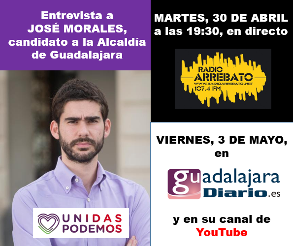 La primera entrevista se realizará este martes, día 30, las 19.30 horas en directo dentro del programa Briandando y tendrá como protagonista a José Morales, candidato de Unidas Podemos al Ayuntamiento de Guadalajara. La entrevista, que podrás seguir en directo a través del 107.4 de la F.M, será publicada en el canal de You Tube de nuestro digital y en la web de Guadalajara Diario el viernes, 3 de mayo.
