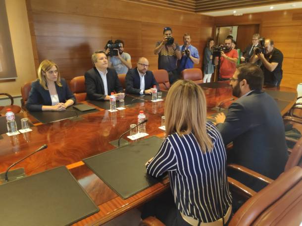 CS-PSOENegociadores de CS y PSOE reunidos en el parlamento de Castilla-La Mancha.
